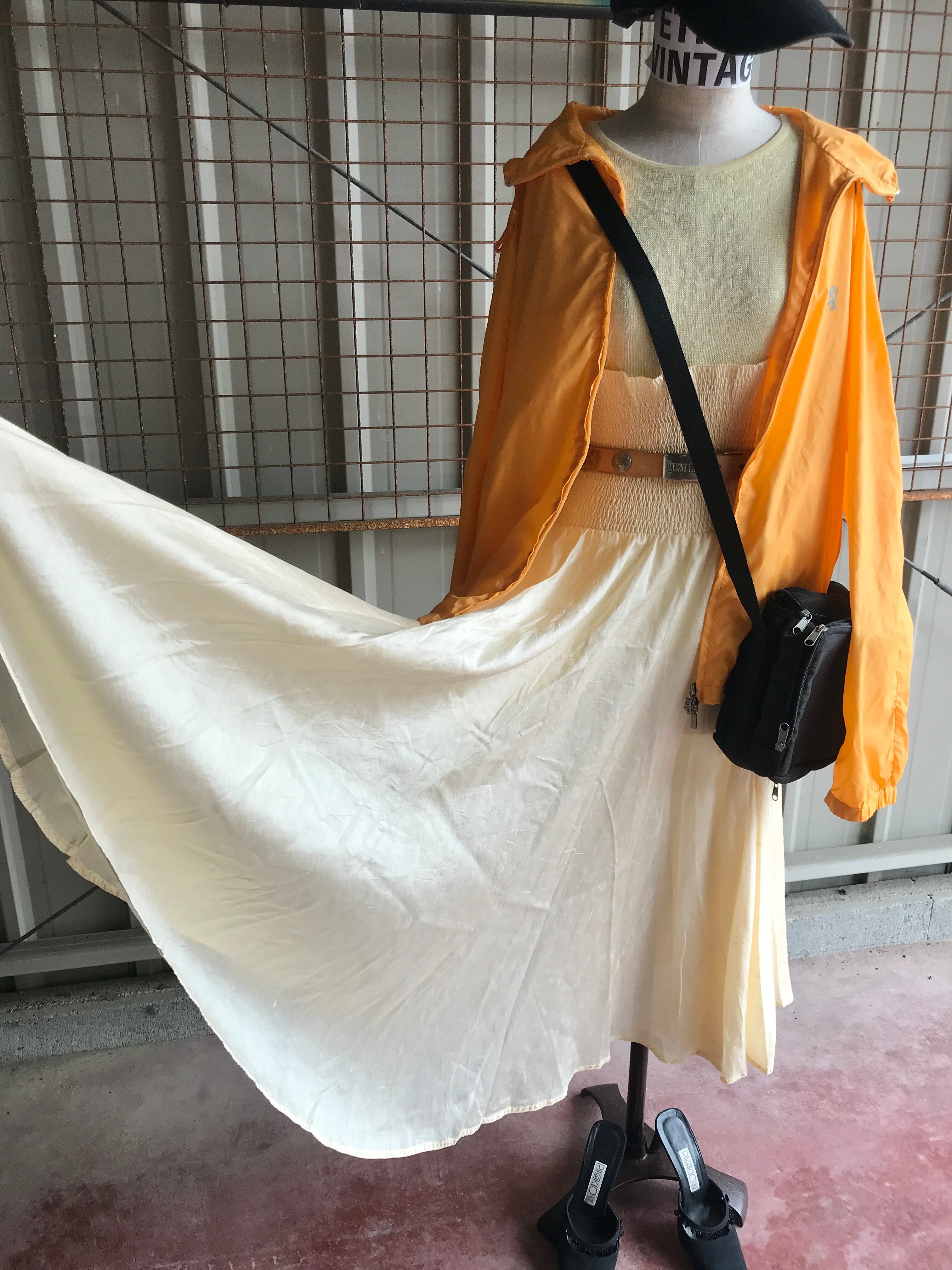 18cmという広いウエストバンドからばさばさと広がる360°フレア。