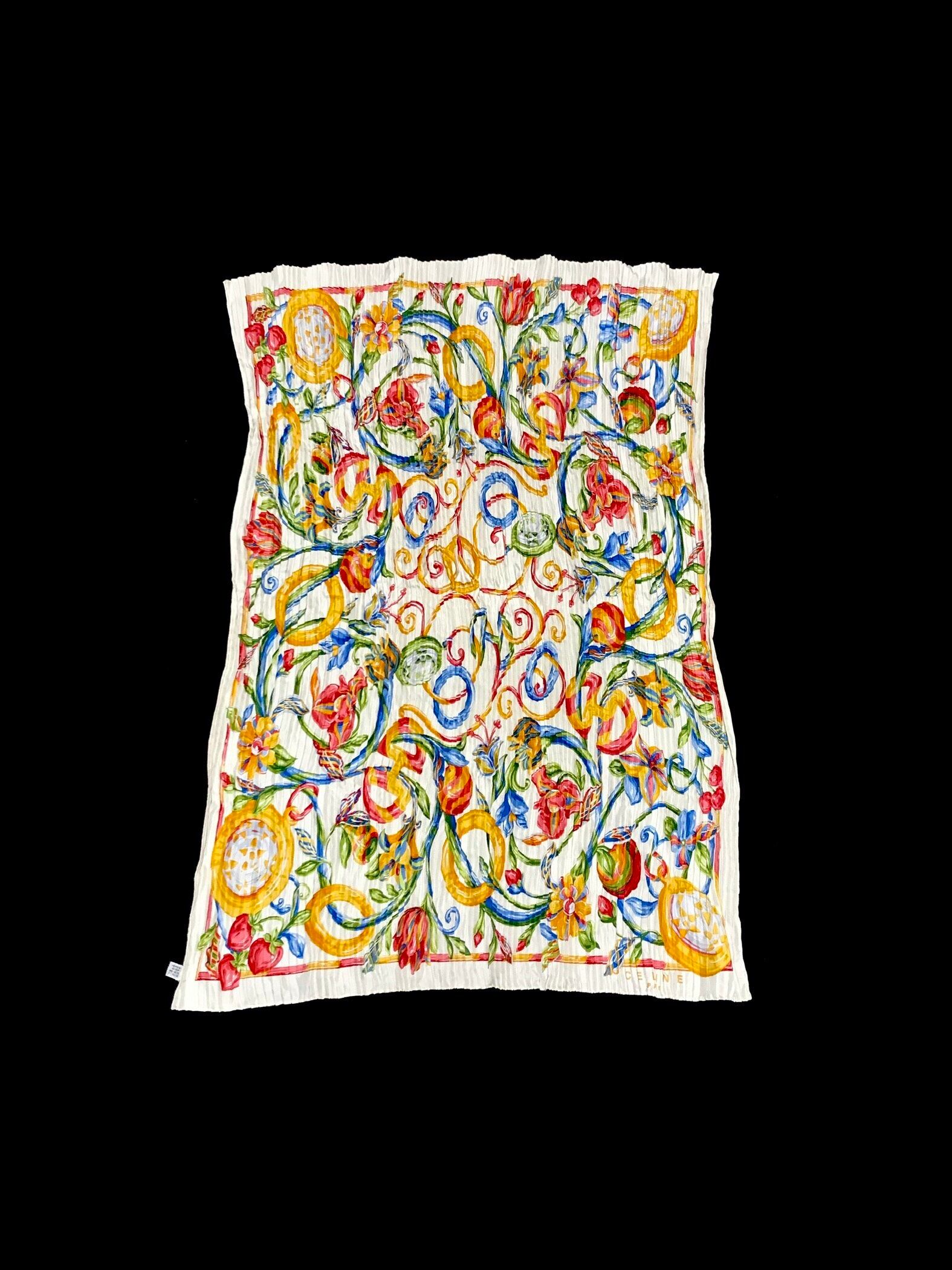 重厚に輝く馬具、極彩色の花々/果実を敷き詰めた絵柄。