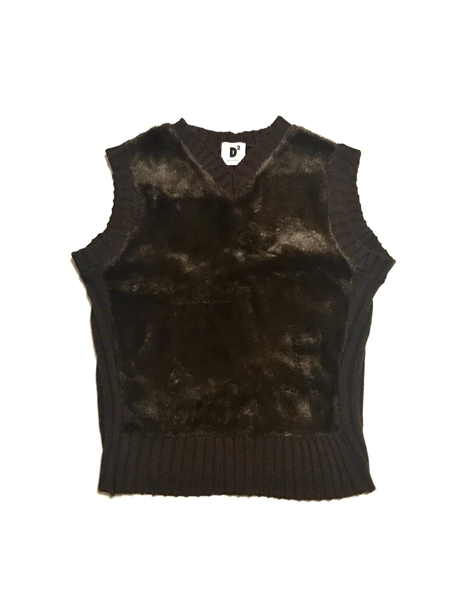 D2SQUARED2 Faux-Fur Switch Design Rib Knit Vest