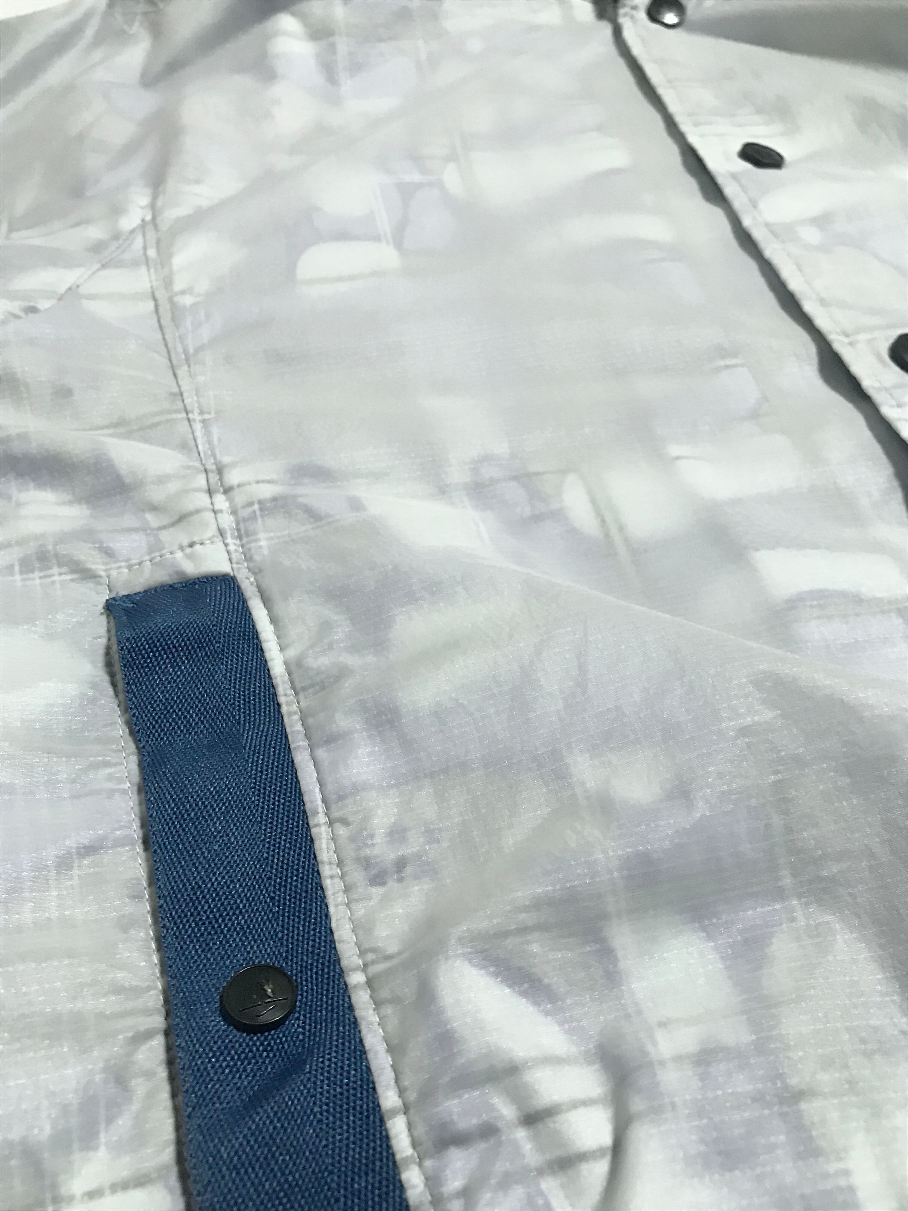フロントボタンを全部閉じればこのガゼットは仕事をしなくなるのですが、開けた時にフードの口が拡がる仕組み。