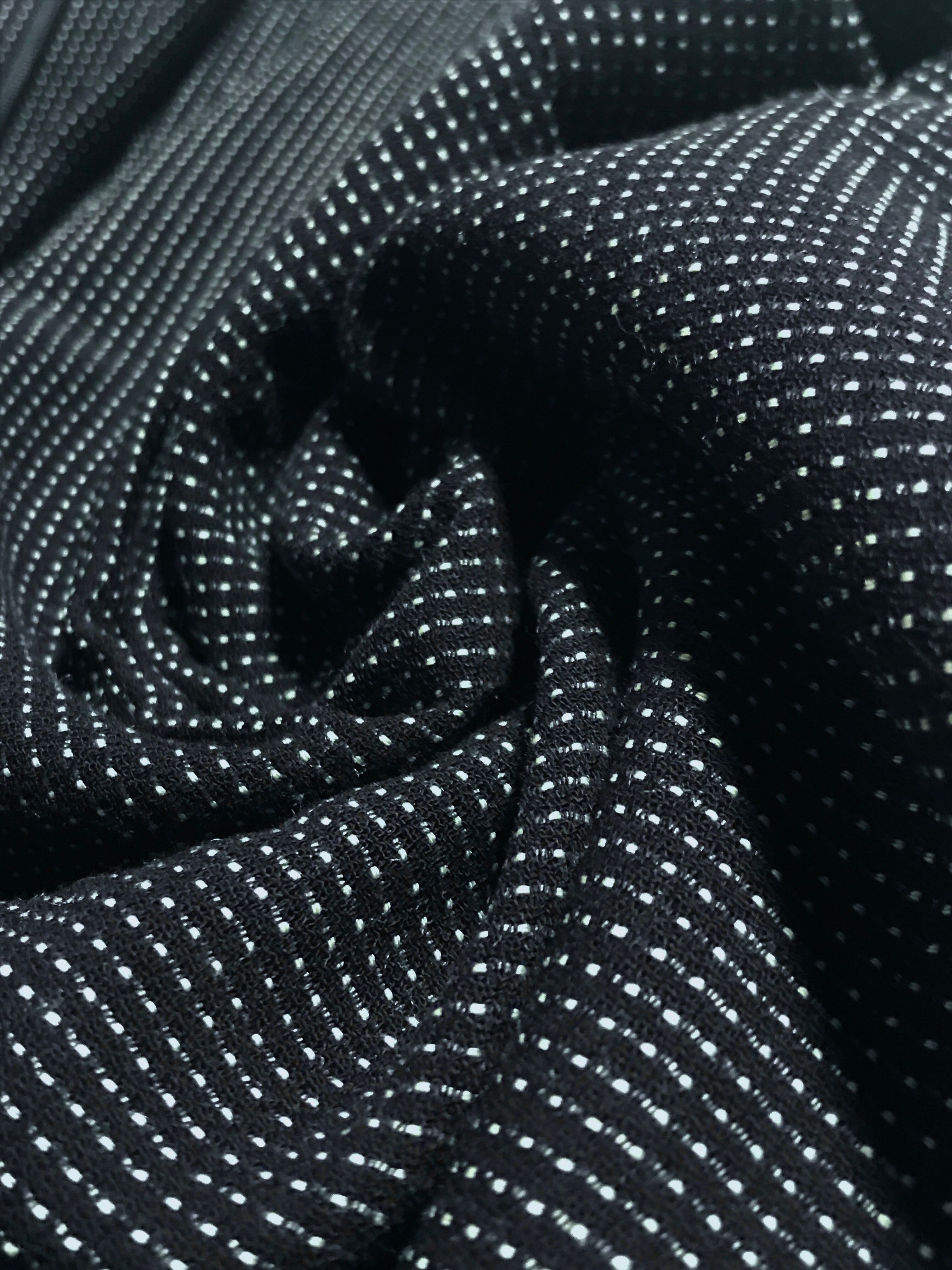 ネイビーに細く疎に白を織り込んだ織り柄。