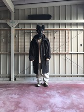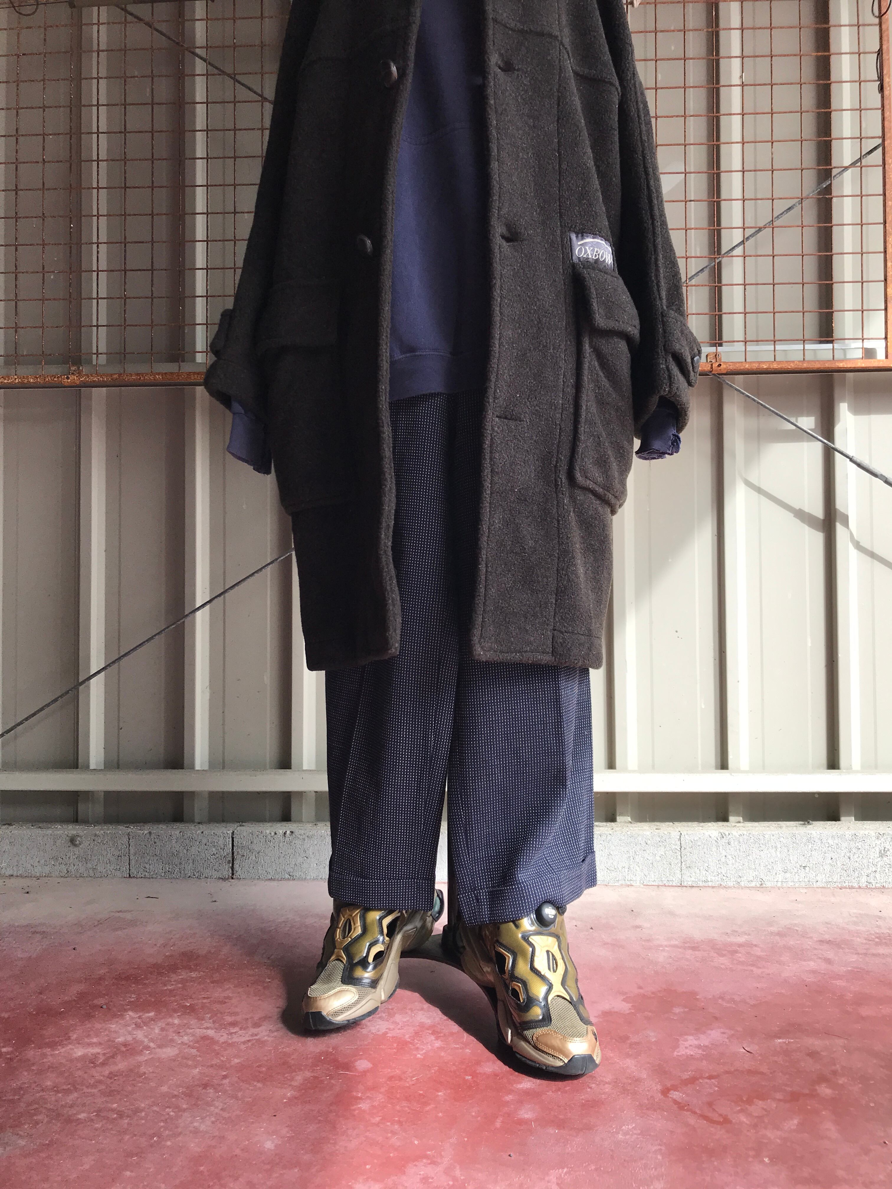 同時代のOXBOWで纏めてのスタイリングを想定して作られていますから、同系統のカジュアルなブルゾン/セーターと合わせても窮屈感の無いように可能な限りルーズに設計されています。