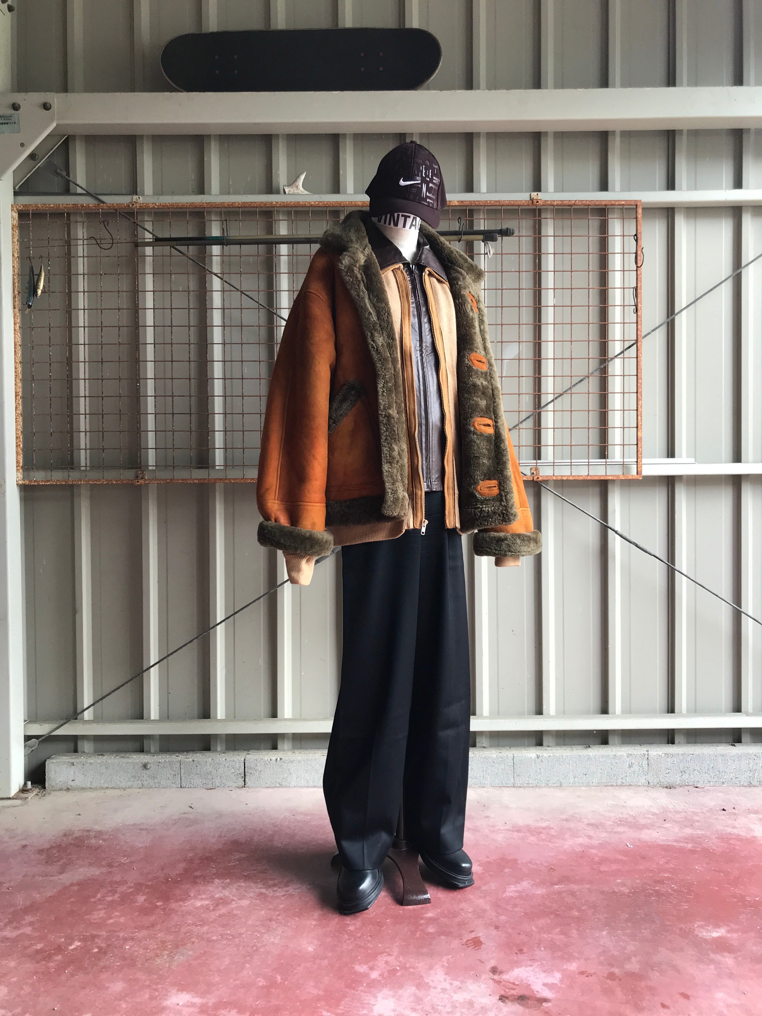 肉厚なムートンレザーとボアではなかなか難しい所なんですが、この個体は襟の成形も綺麗ですのでフルボタンでご着用いただいても素敵です。