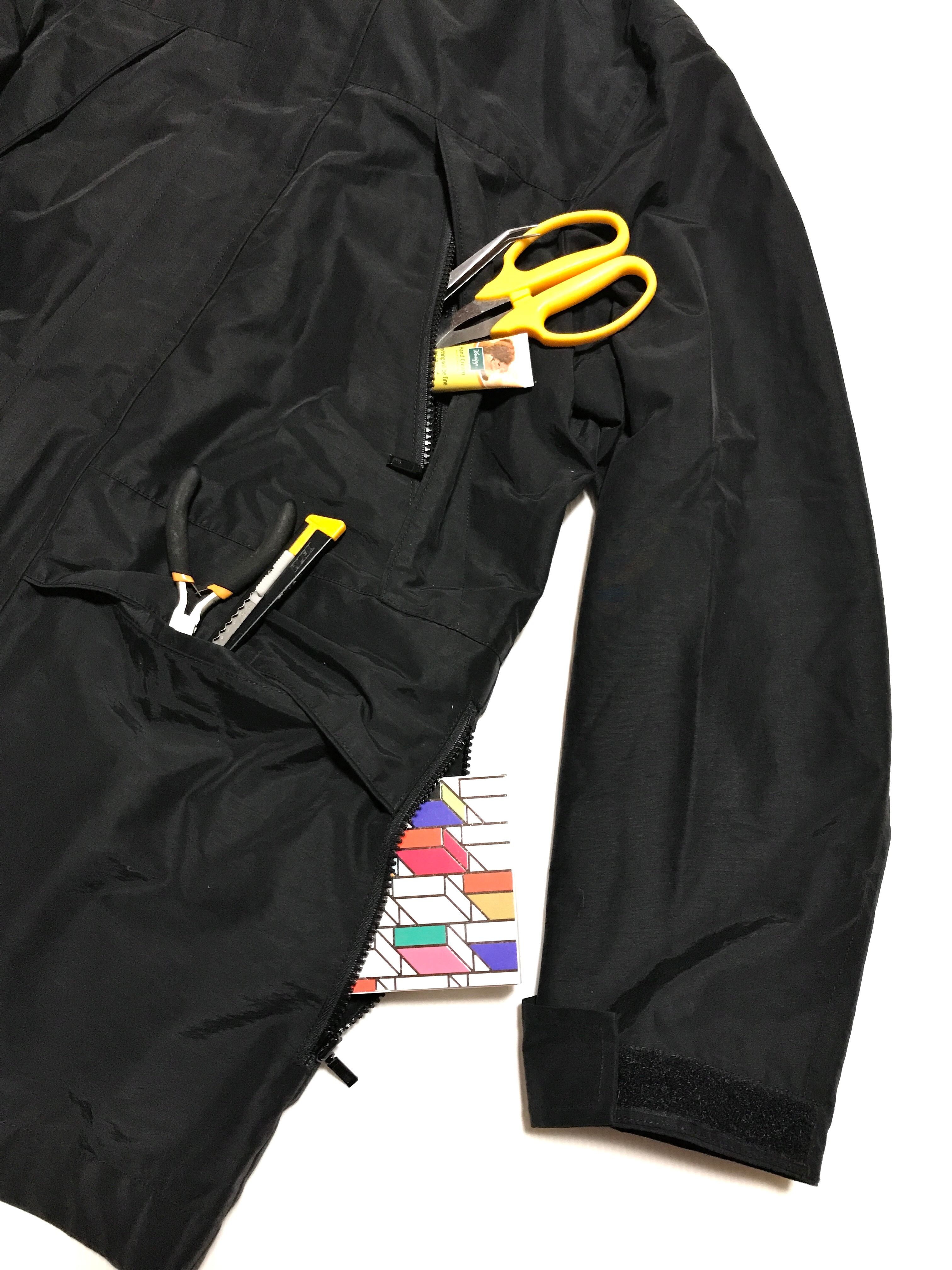アウトドアウェアみたいなポケット構成のアウトシェルと、機能的なポケット配置を決め込んだシースルーメッシュのインナーベストの2着がセットになった洋服です。
