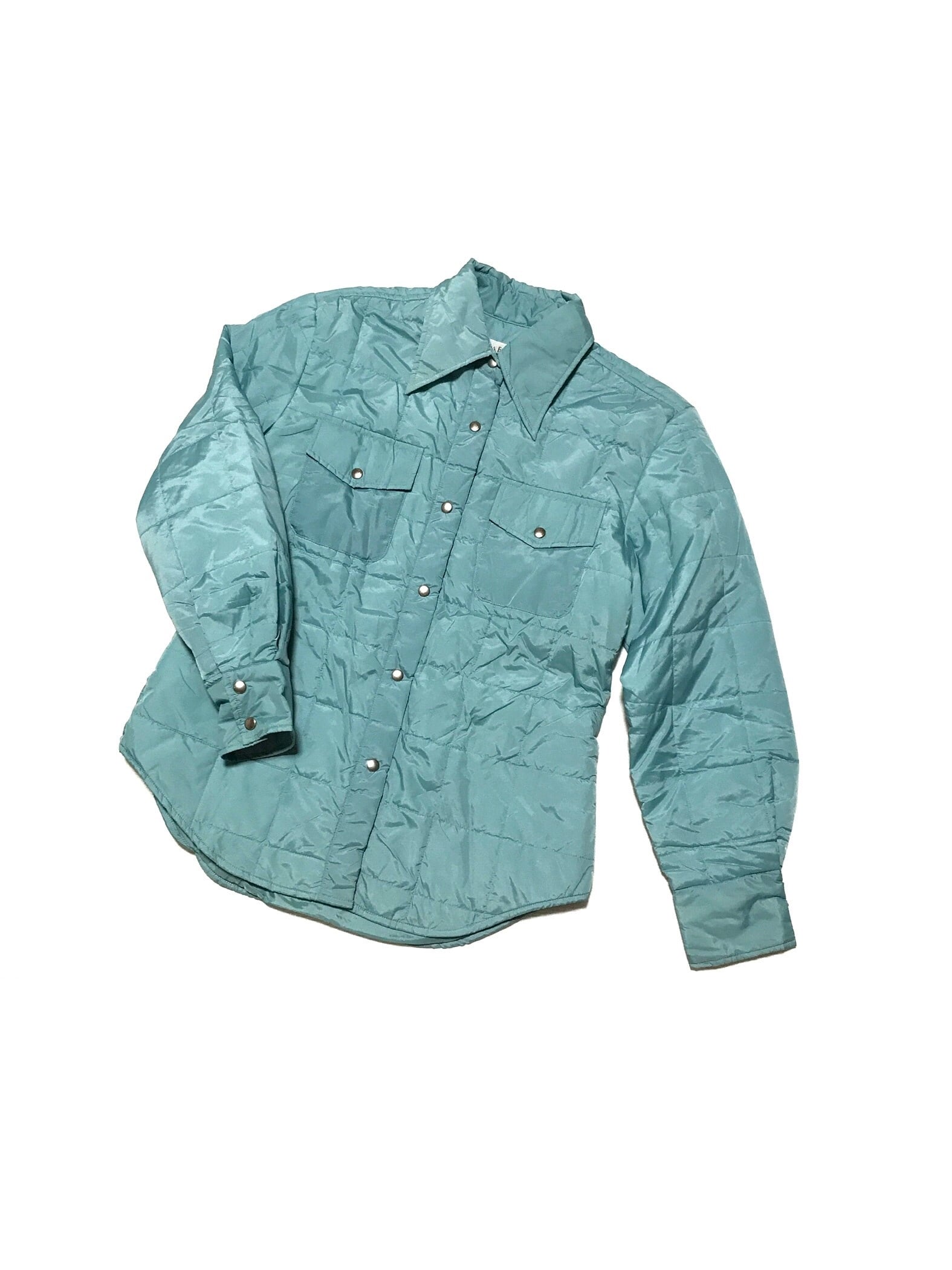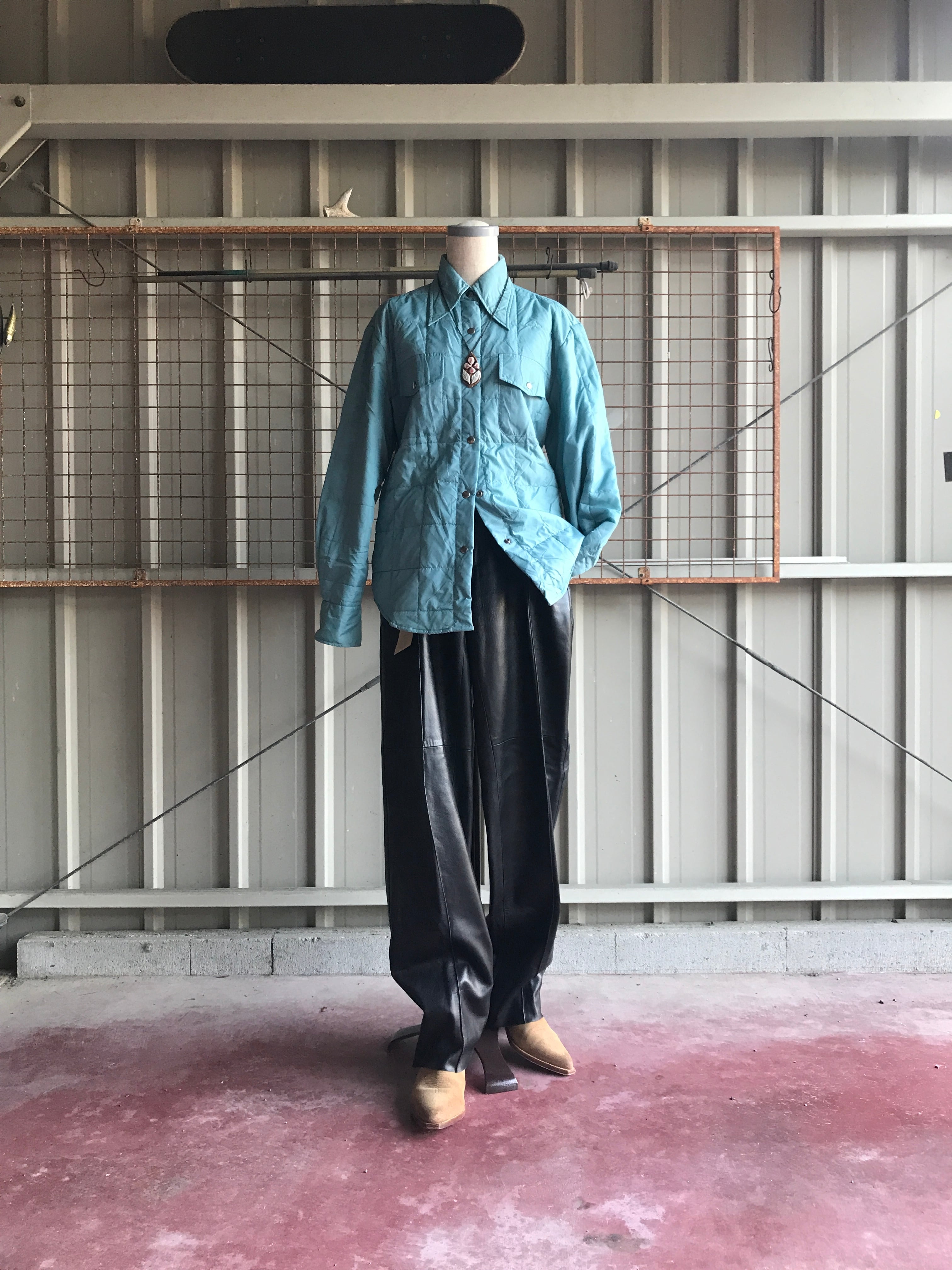 90-00's RAFAGA Pale Emerald Blue Big Collar Paded SH