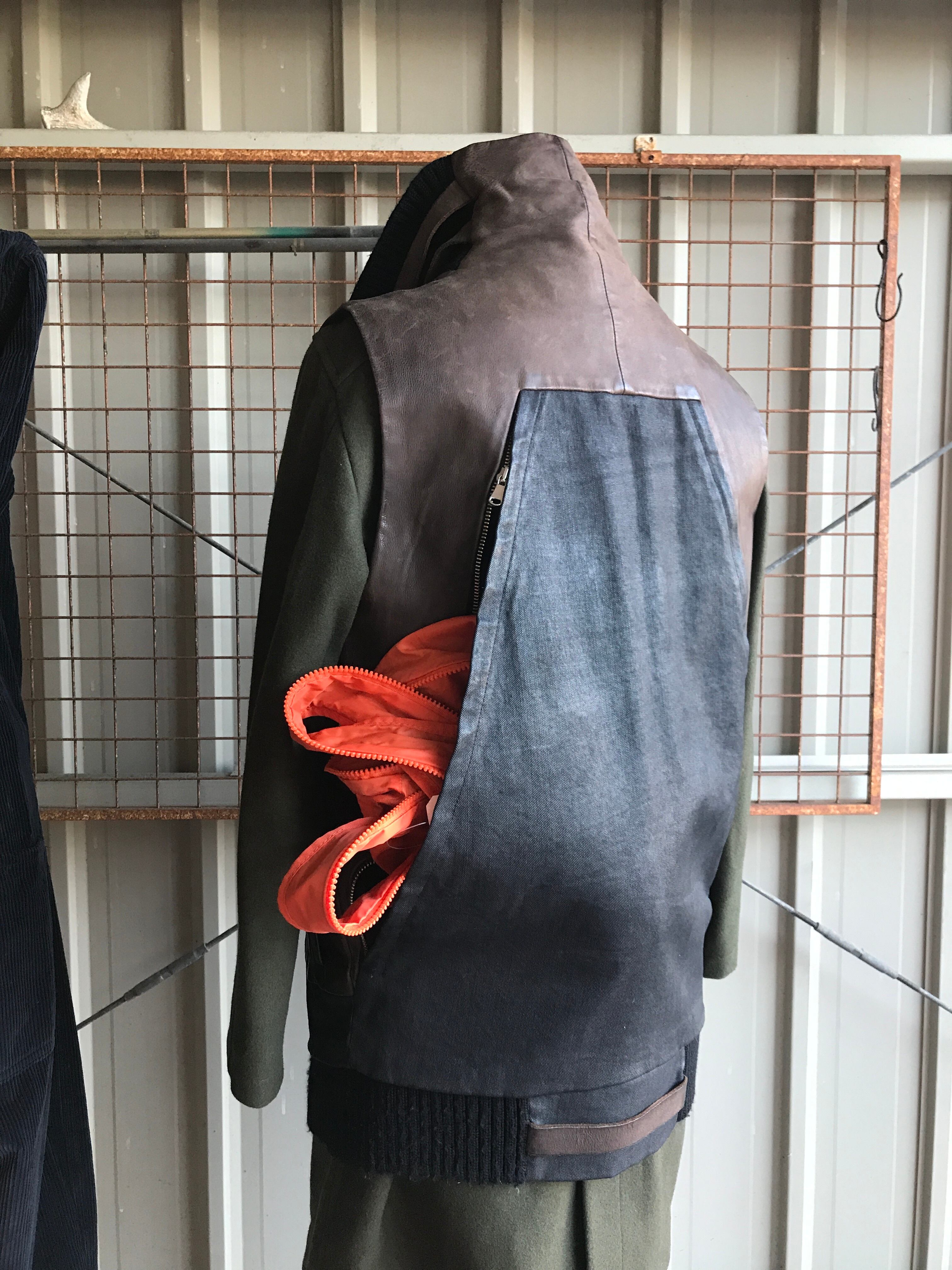 この切り替えラインはテーラードジャケット類に見られる裏地設計のバリエーションからの引用ですね。