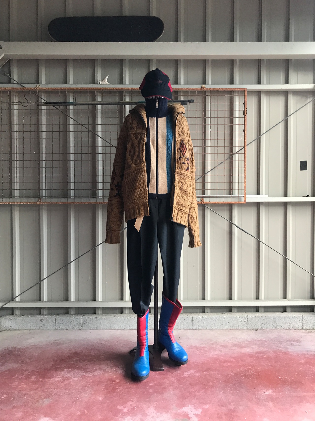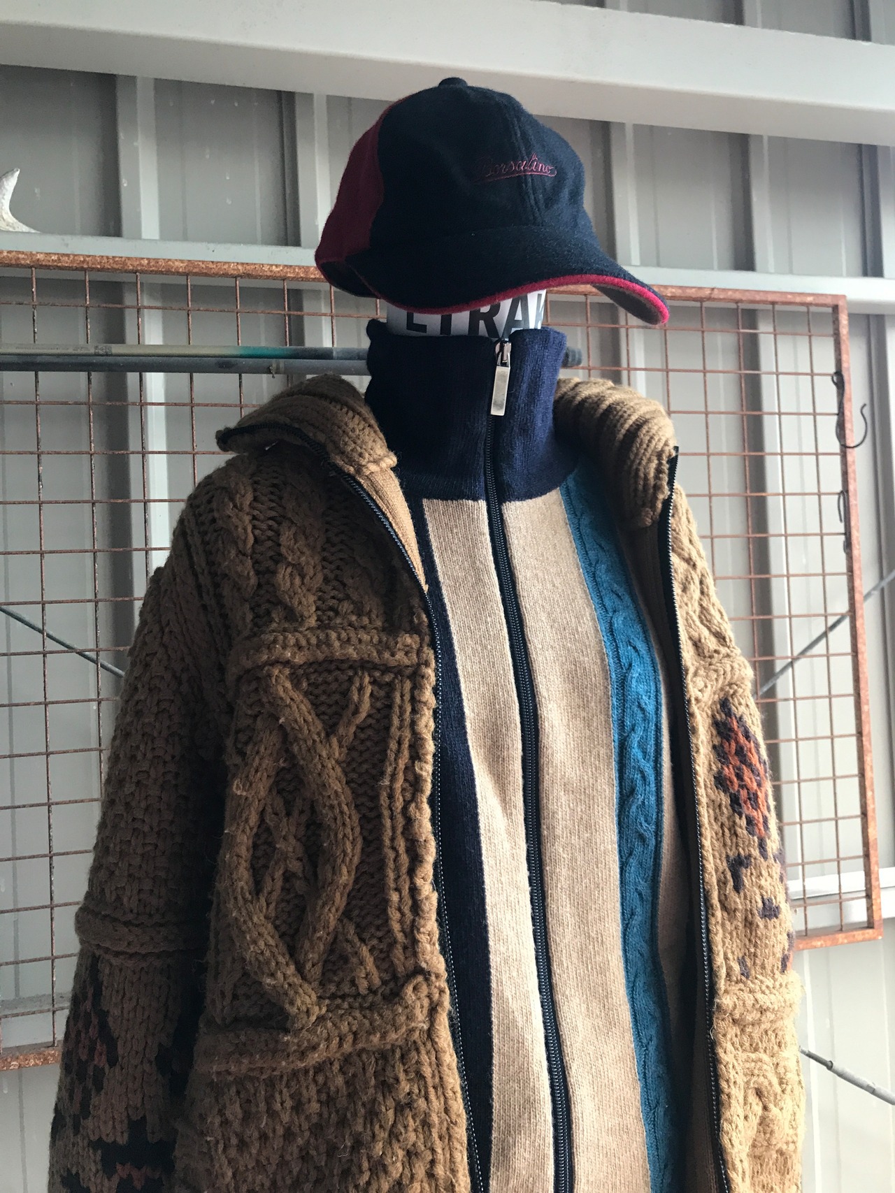 リジッドウールそのまんま、と言う感じの深いベージュカラーのジップアップセーターという定番のアイテムフォーマットではあるのですが、その中でも飛び切り表情豊かなファニーピース。