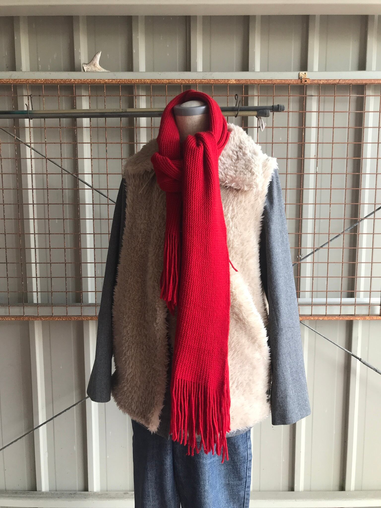 スコットランドメイドのリブ編みチャンキーニットマフラー。