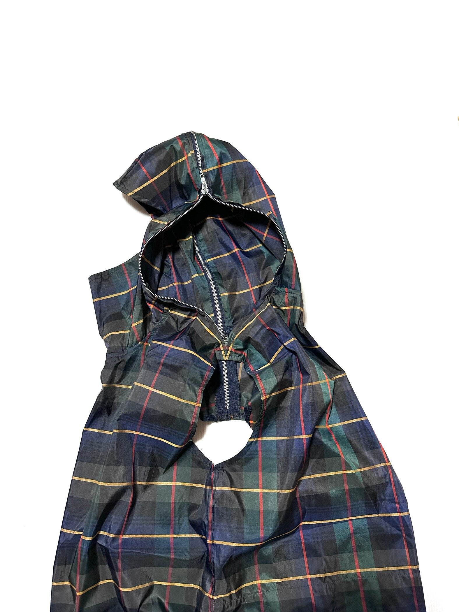 フード部分のファスナーは中開きのダブルジップです。肩線の終わりまで続いていますので、着脱は慣れると案外楽です。