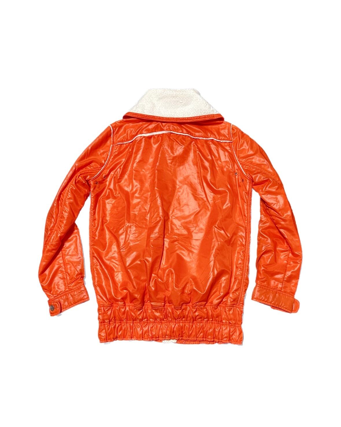 ビビッドオレンジのナイロンシェルとホワイトパイルのコンビネーション。