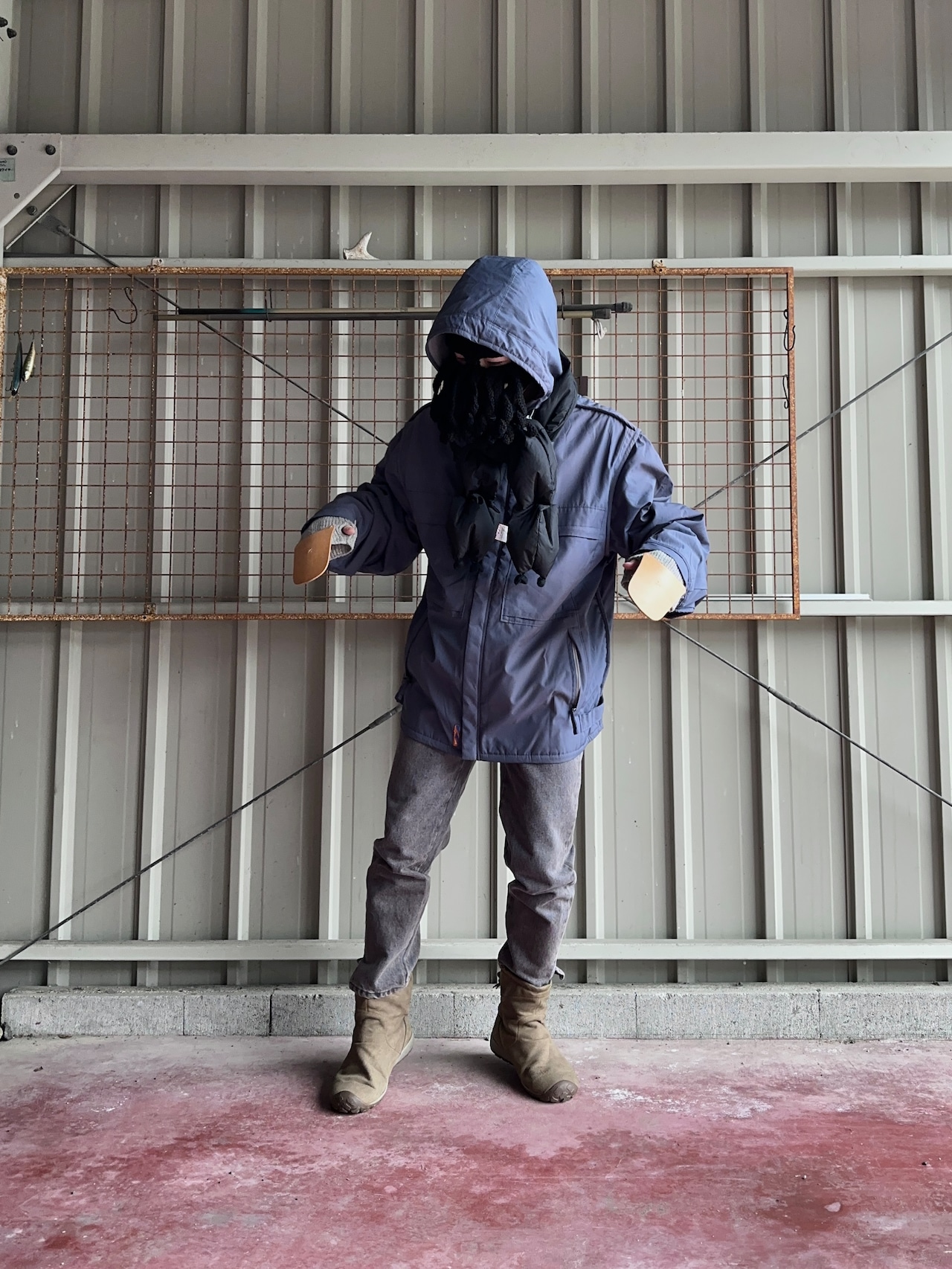 後ろ姿にほんのりプリミティブな空気も纏わせてます。