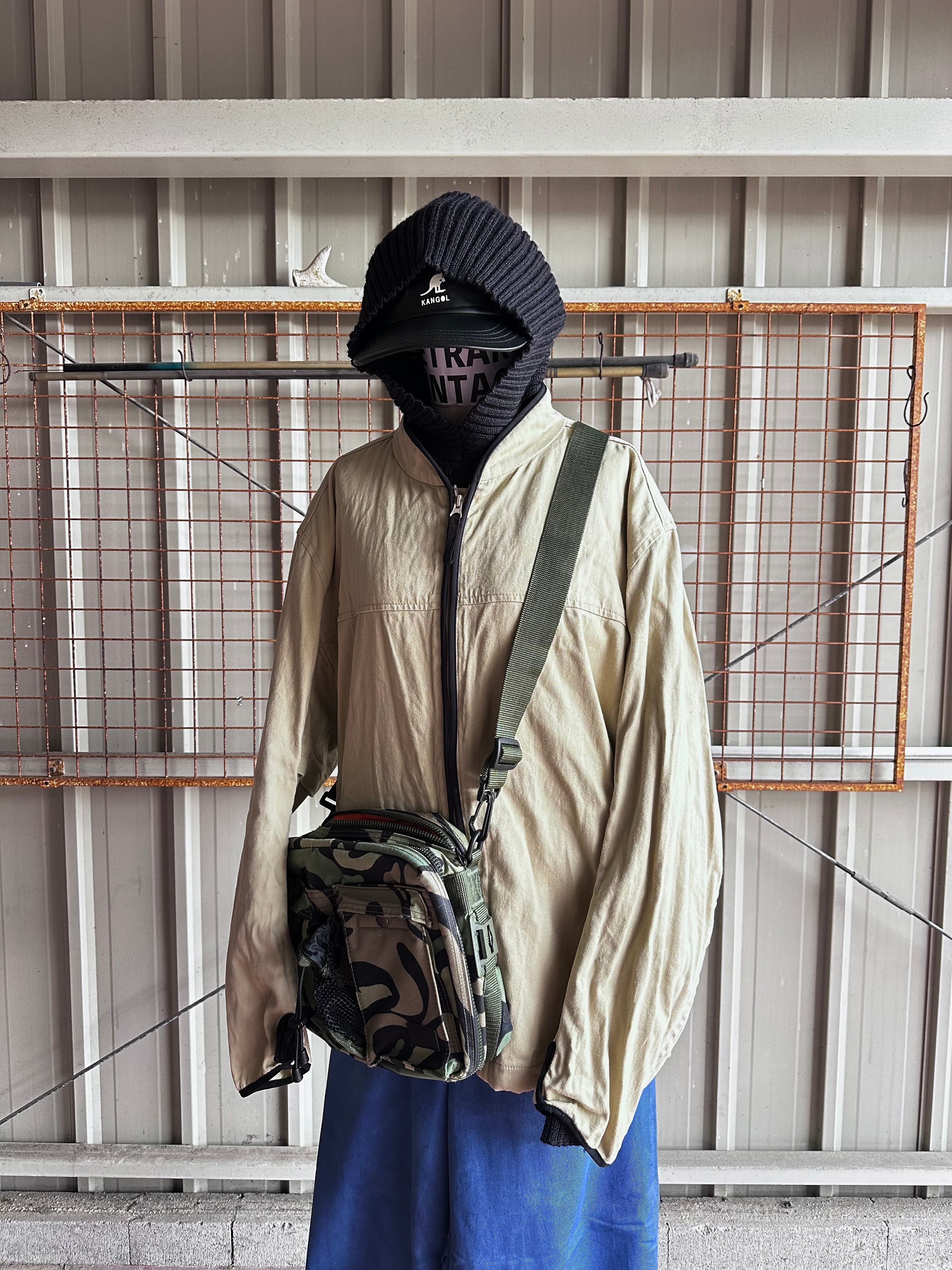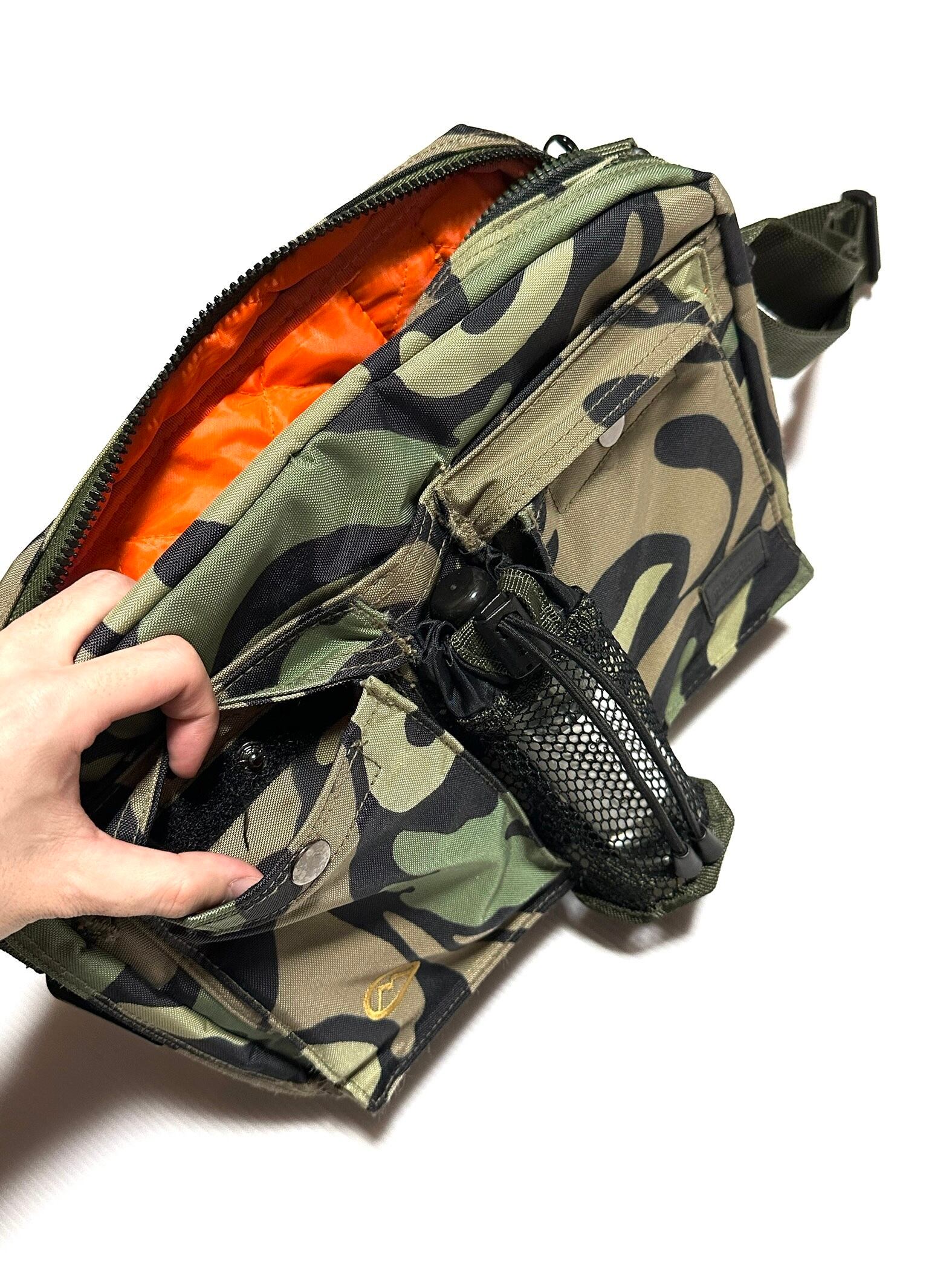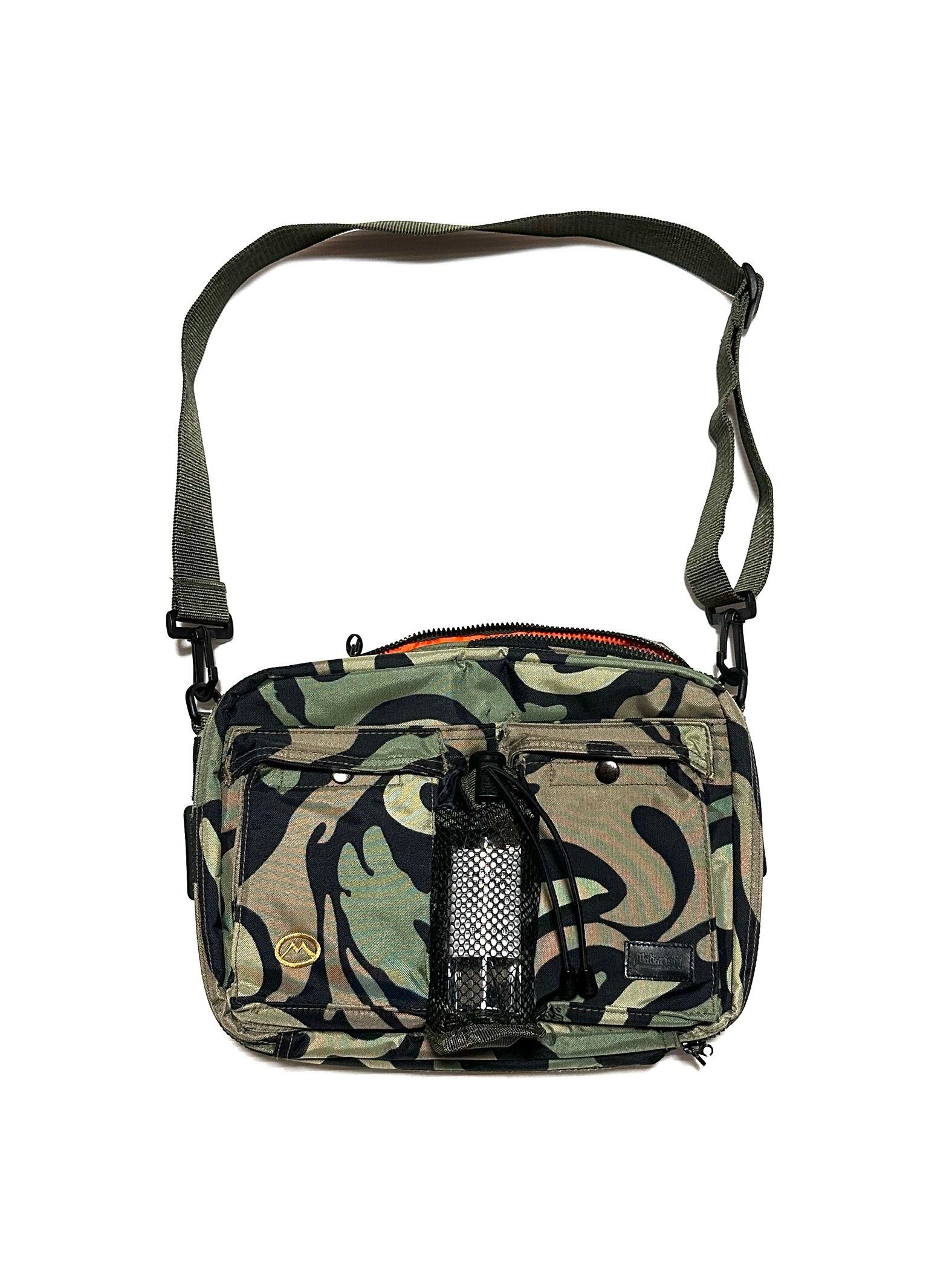 どろりと溶けたような独特な迷彩柄のショルダーバッグ。