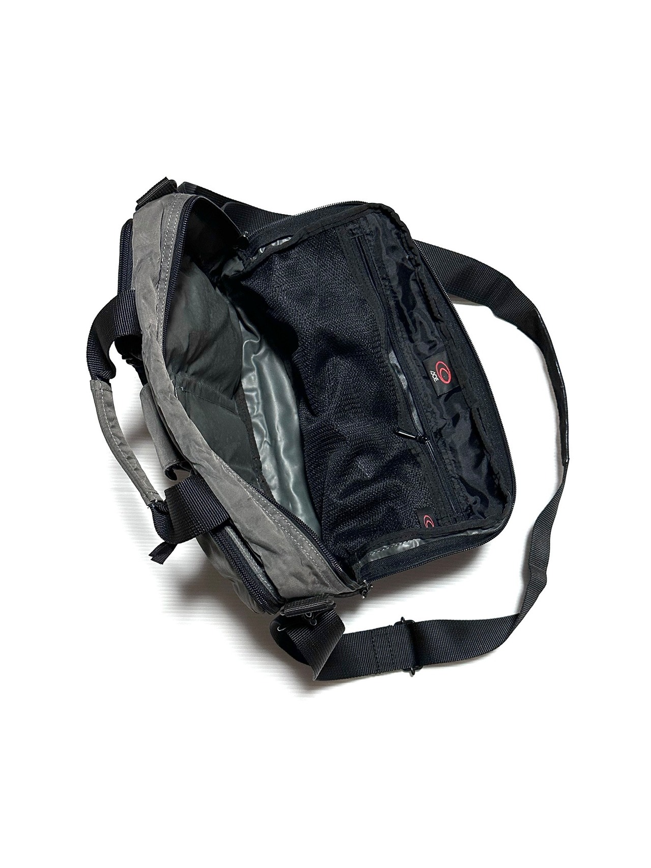 ローテクなナイロン仕立て、燻んだスモーキーグレーの色味も可愛い。