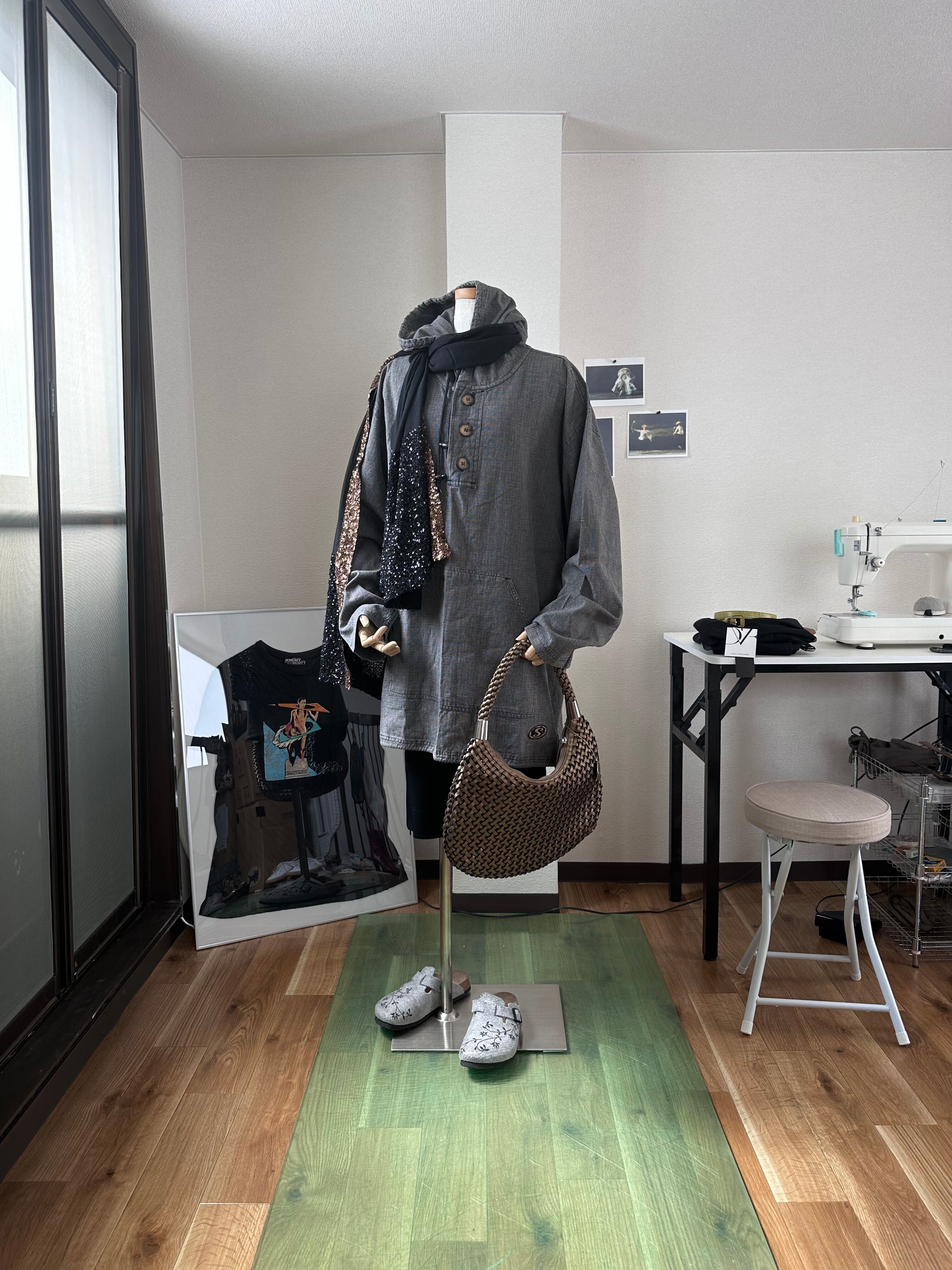 ゴールドという強烈なカラーコードを合わせながら、素材感ではまるで対極にある両マテリアルを掛け算。