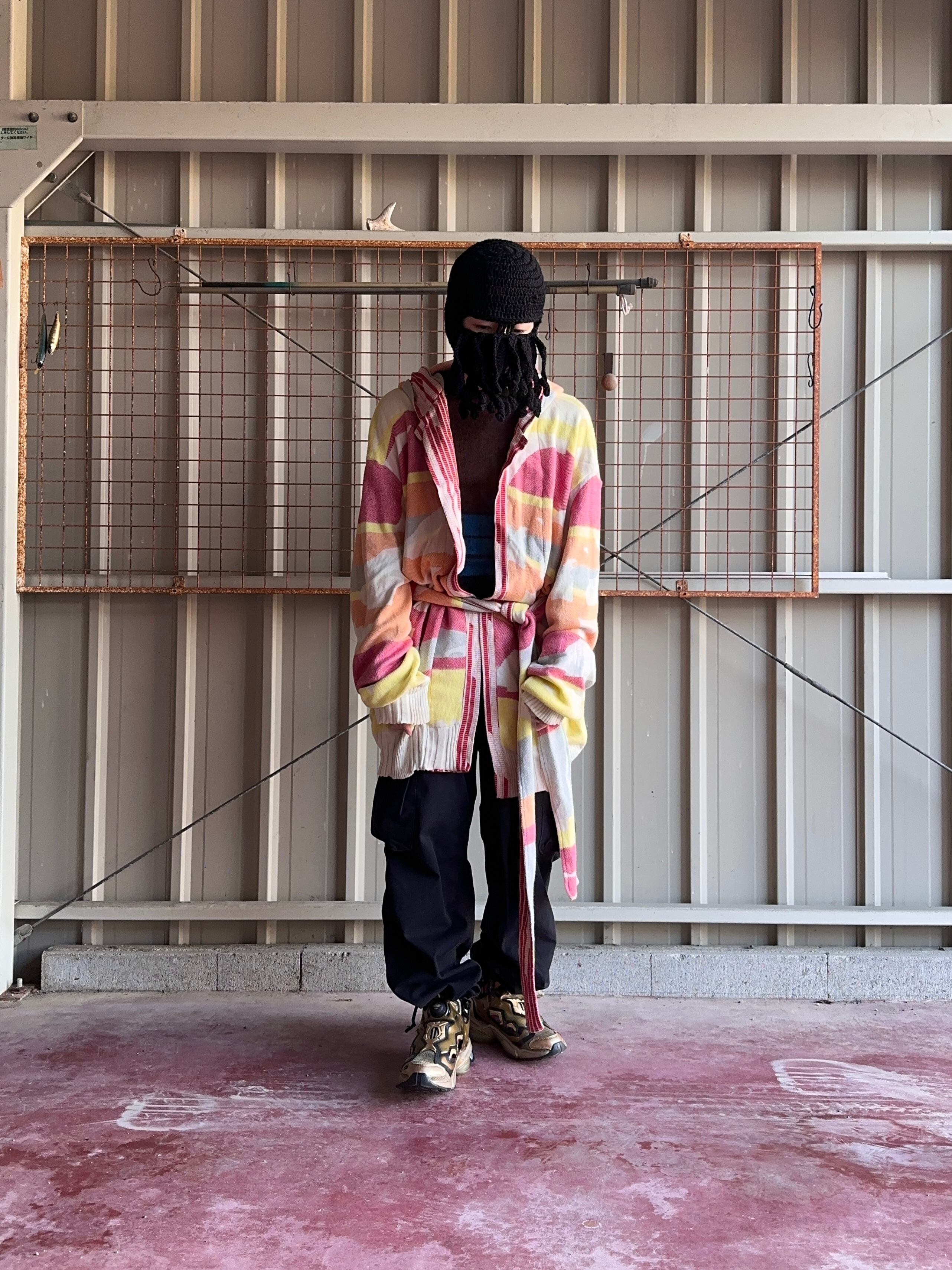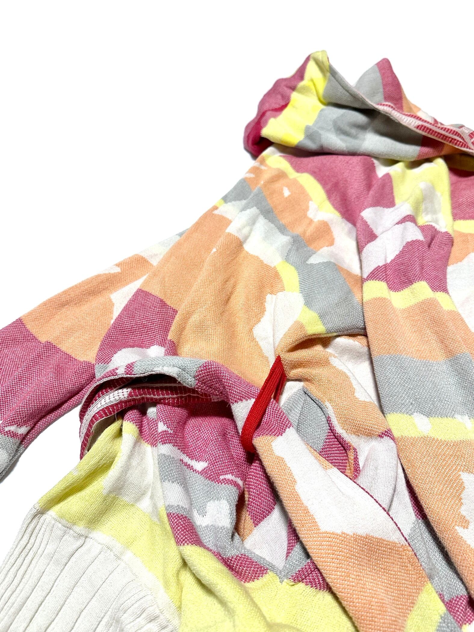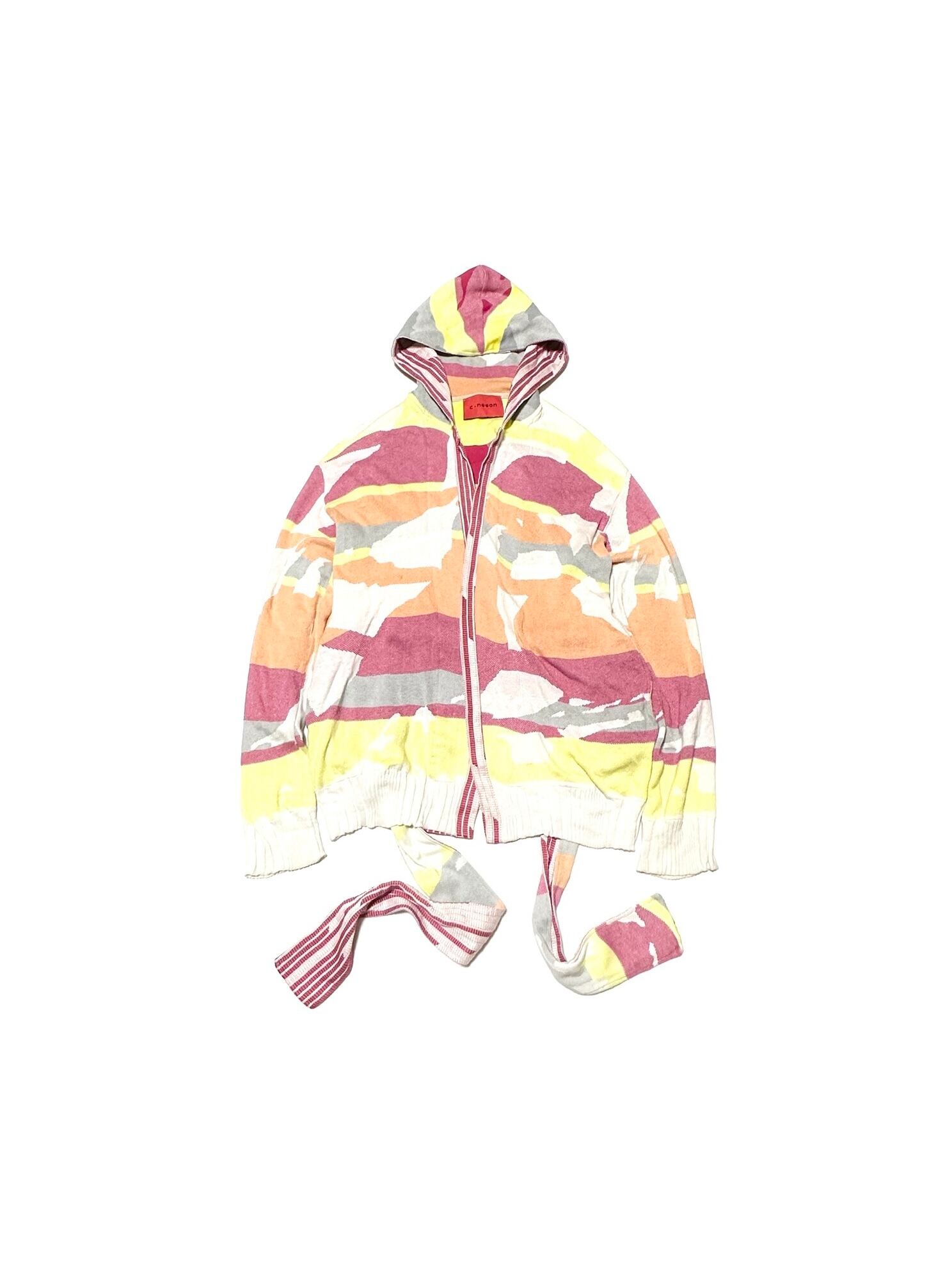 ファンシーなペールカラーをランダムに重ね並べたニットパーカーです。