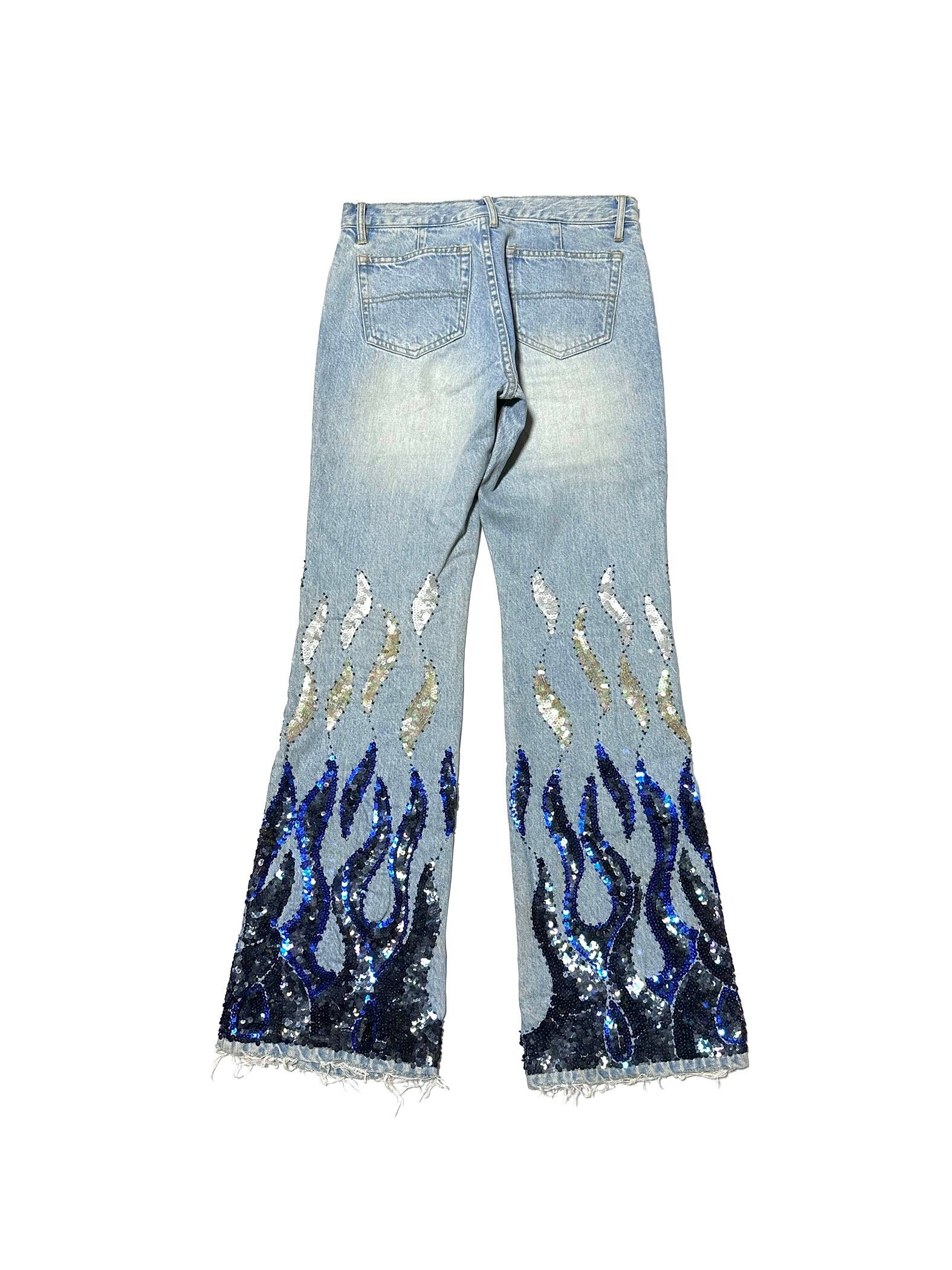 00's KHL Blue Fire Spangle Design Flared Jeans