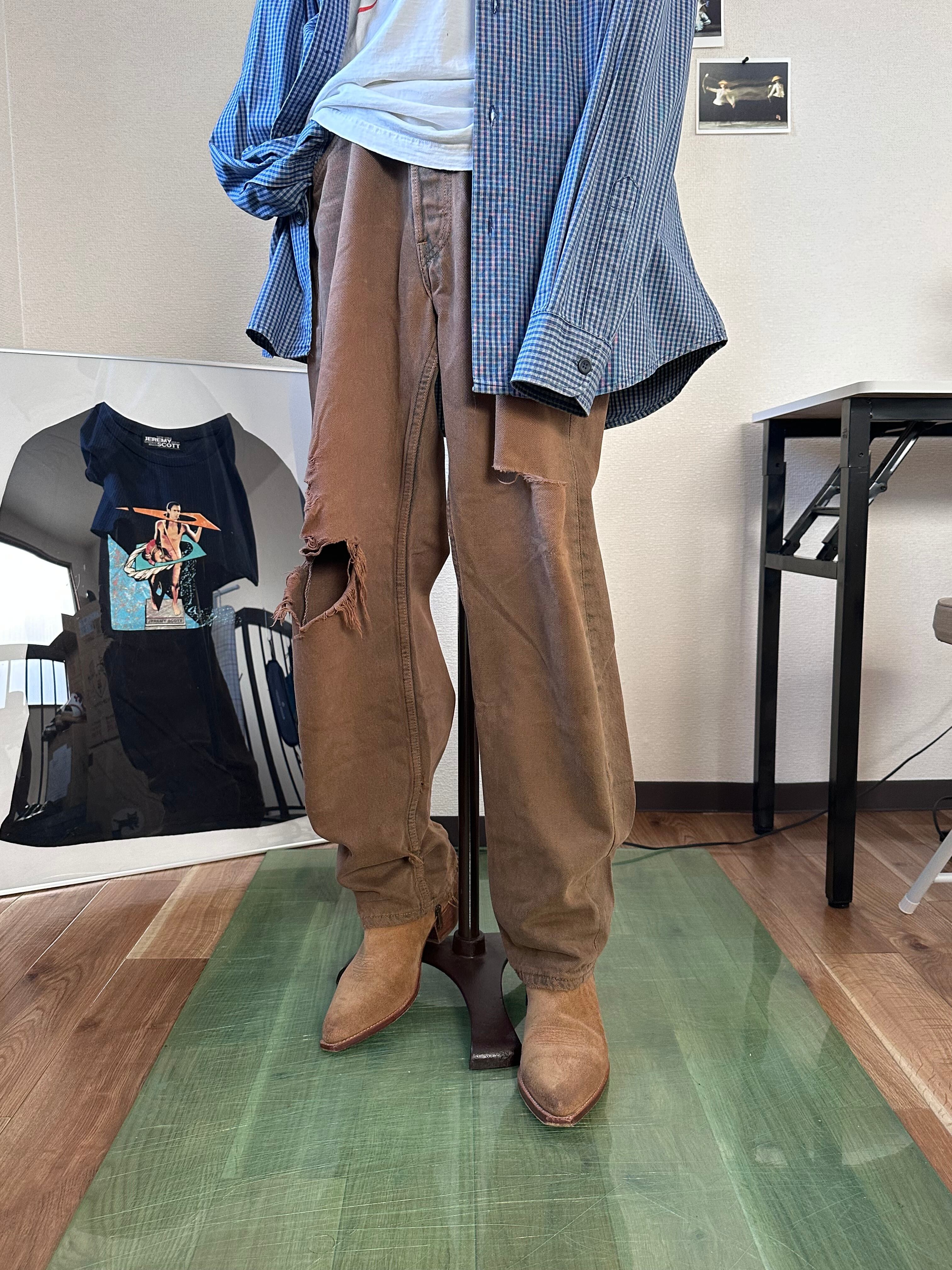 勿論何千万の値が付く炭鉱デニムのそれとは型紙から根本的に違うものですが、洋服の中でほぼ唯一そんな道筋を辿り得るこの「ジーンズ」というカテゴリの面白さを偶発的に宿した一本。