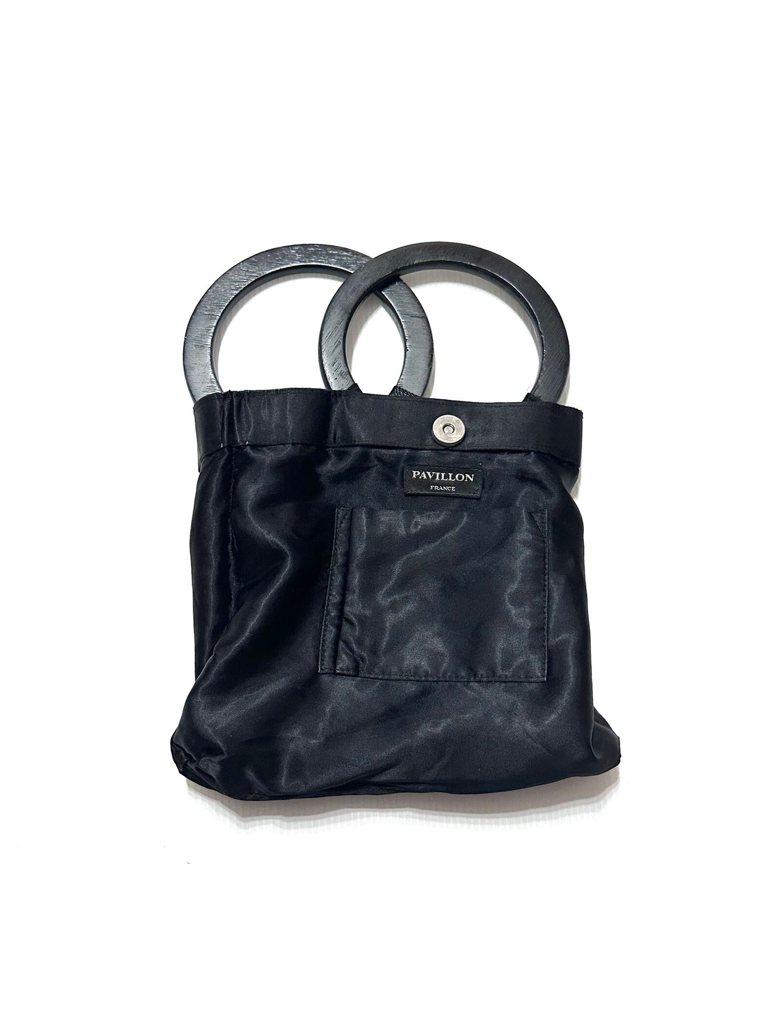 PAVILLON Black Clochet × Wood Combi Design Hand Bag