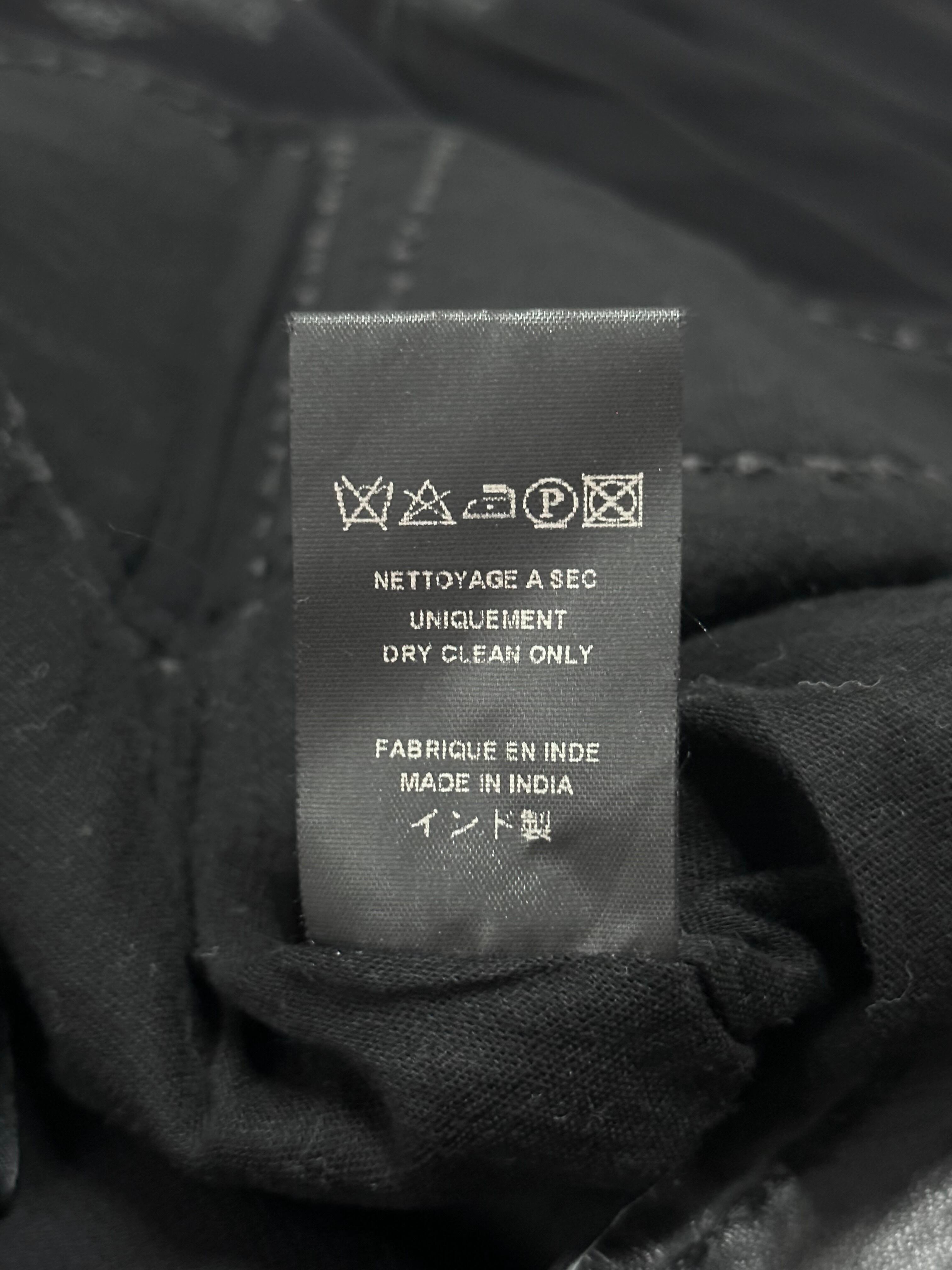 テクスチャに大きな差異の無い異素材ローンのコンビ使いに、同色ラムレザーでのウエスト装飾。