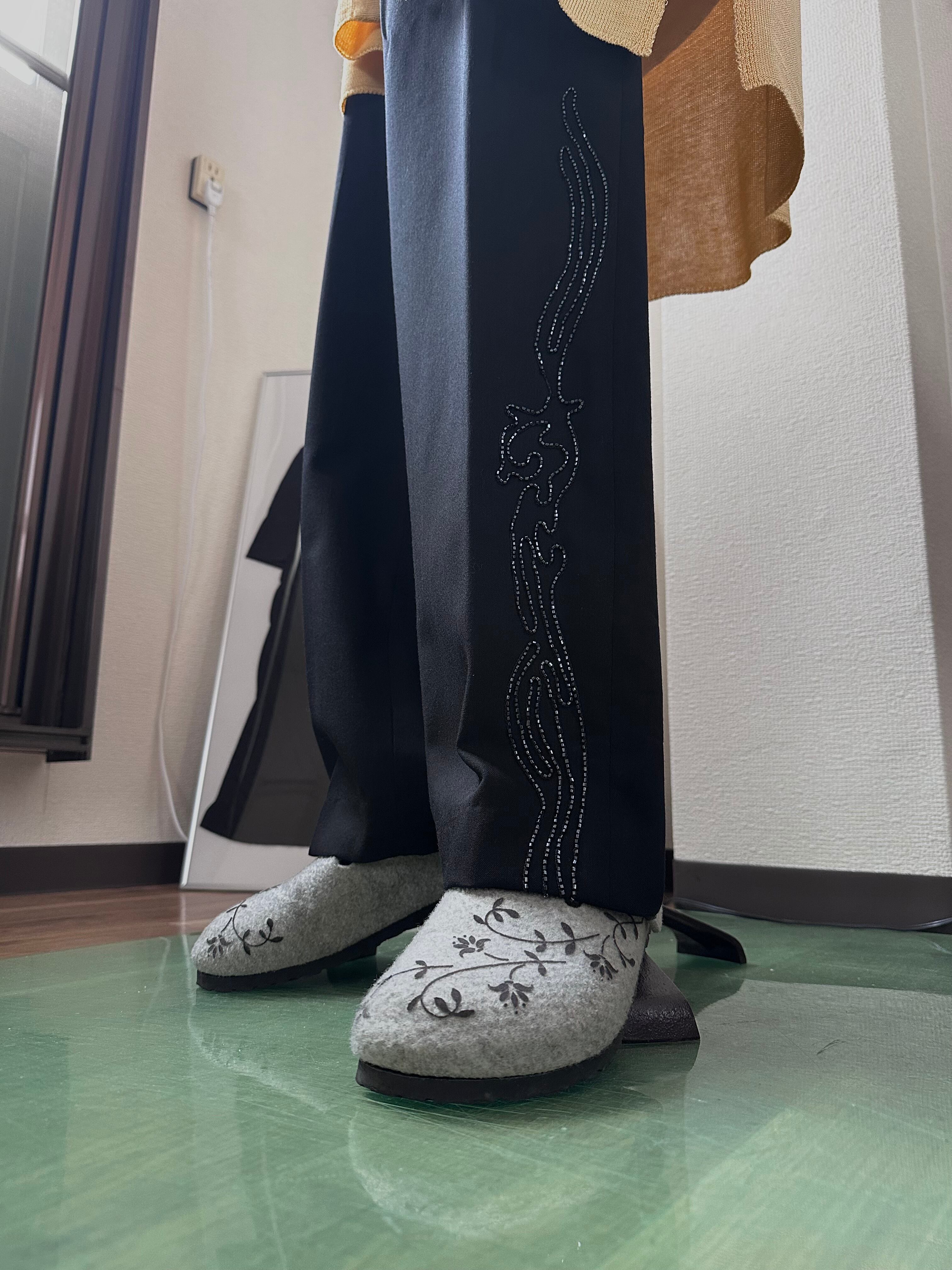 c2000's VERSUS Glass_Beads_Embroidery Design Straight Slacks