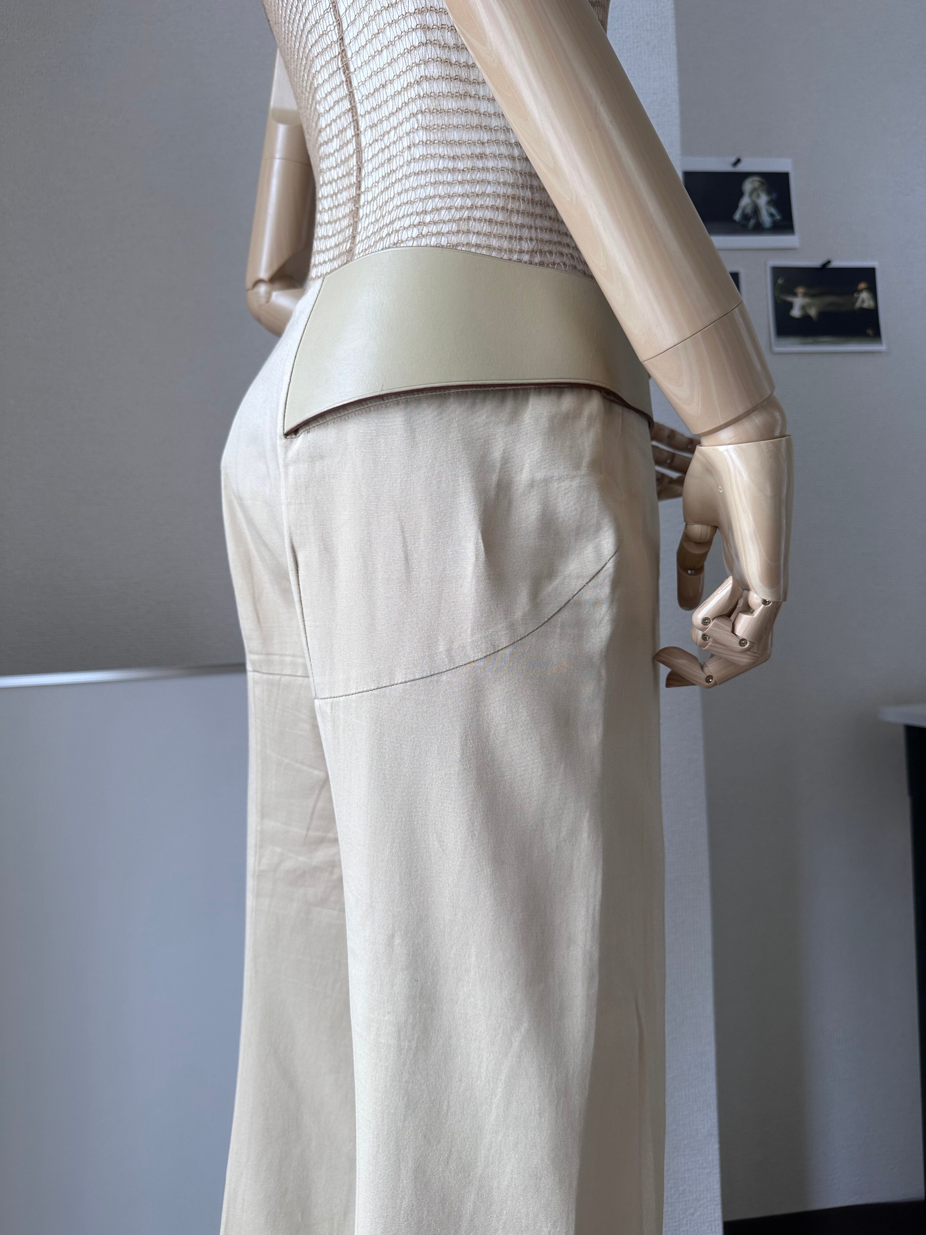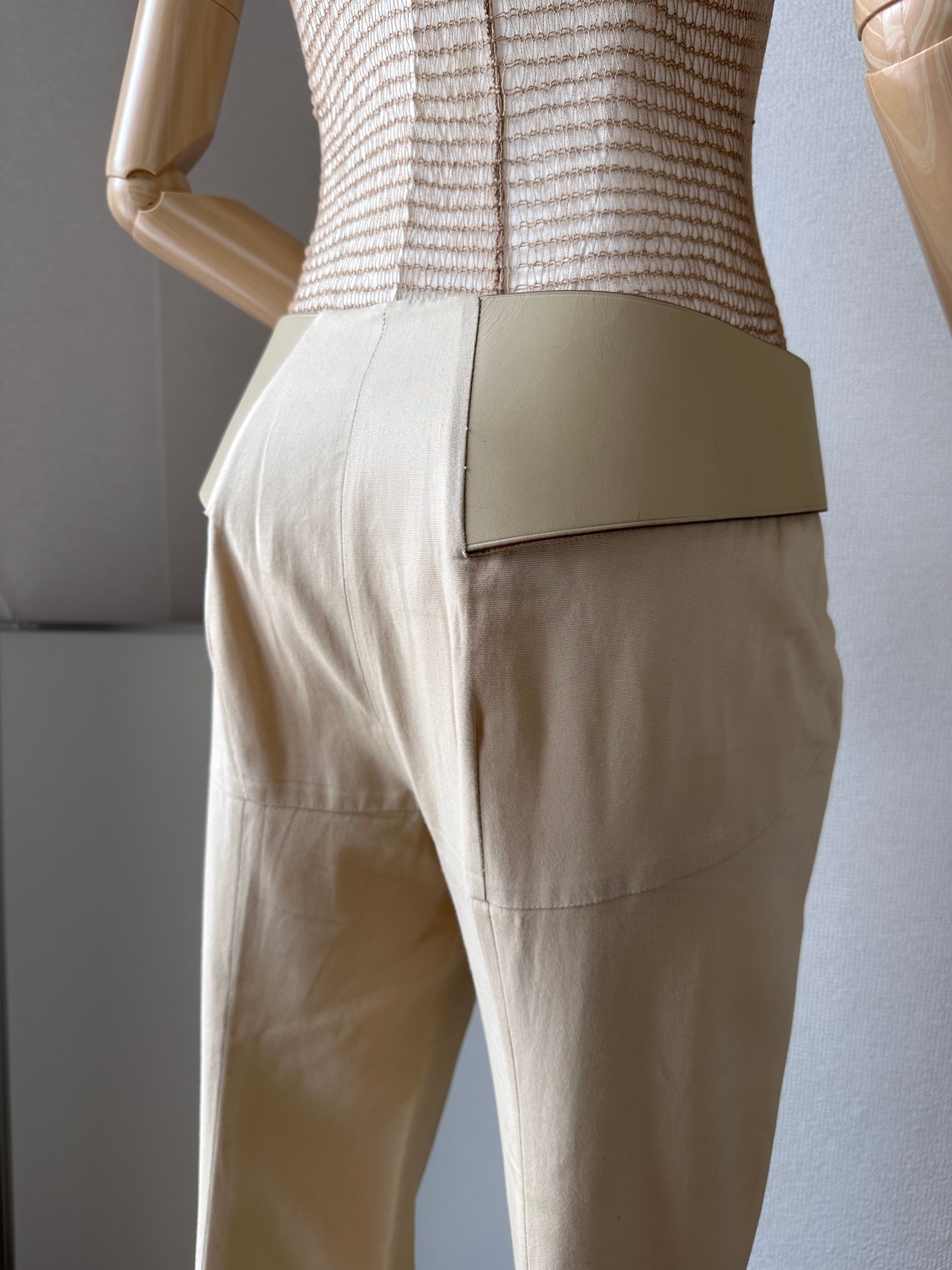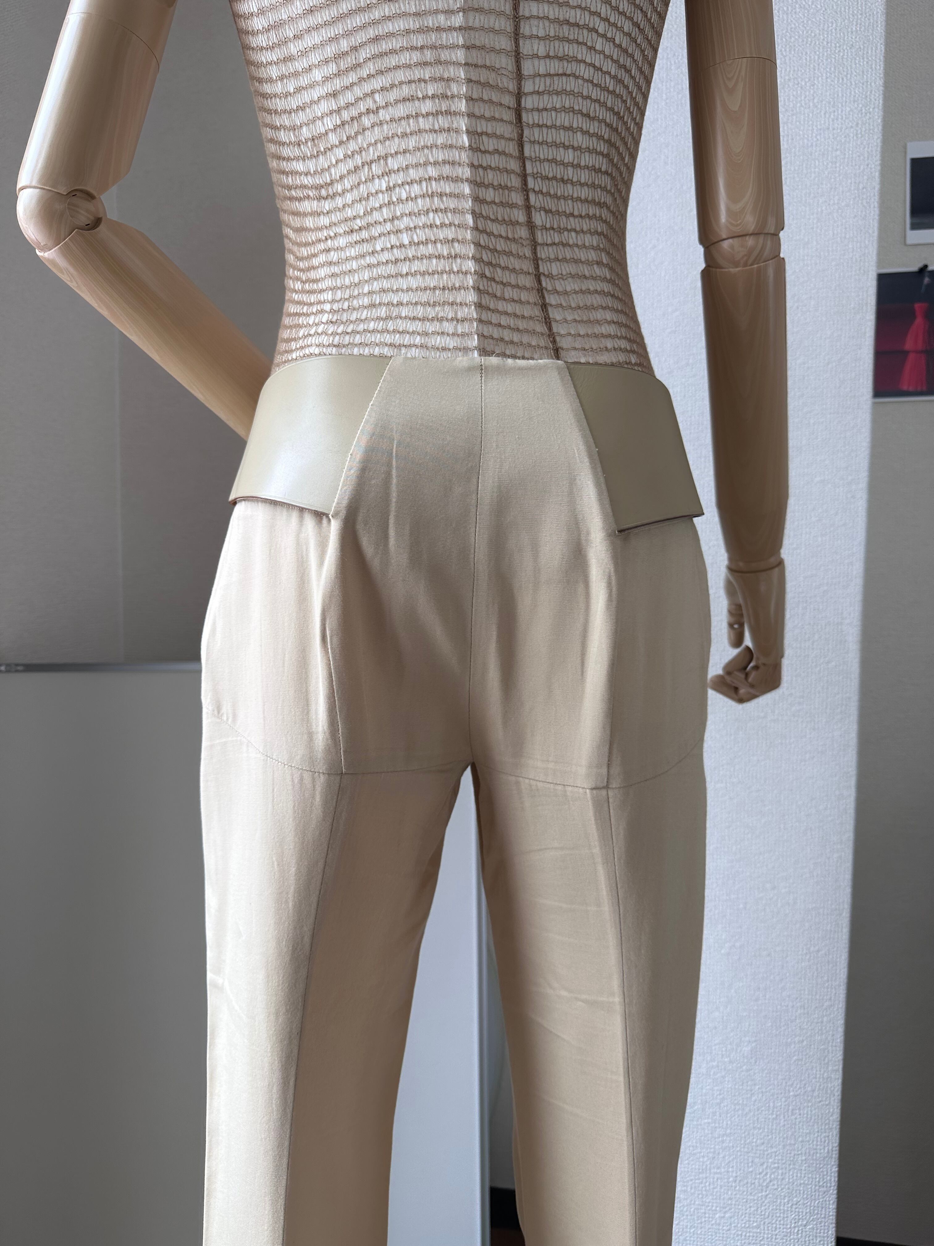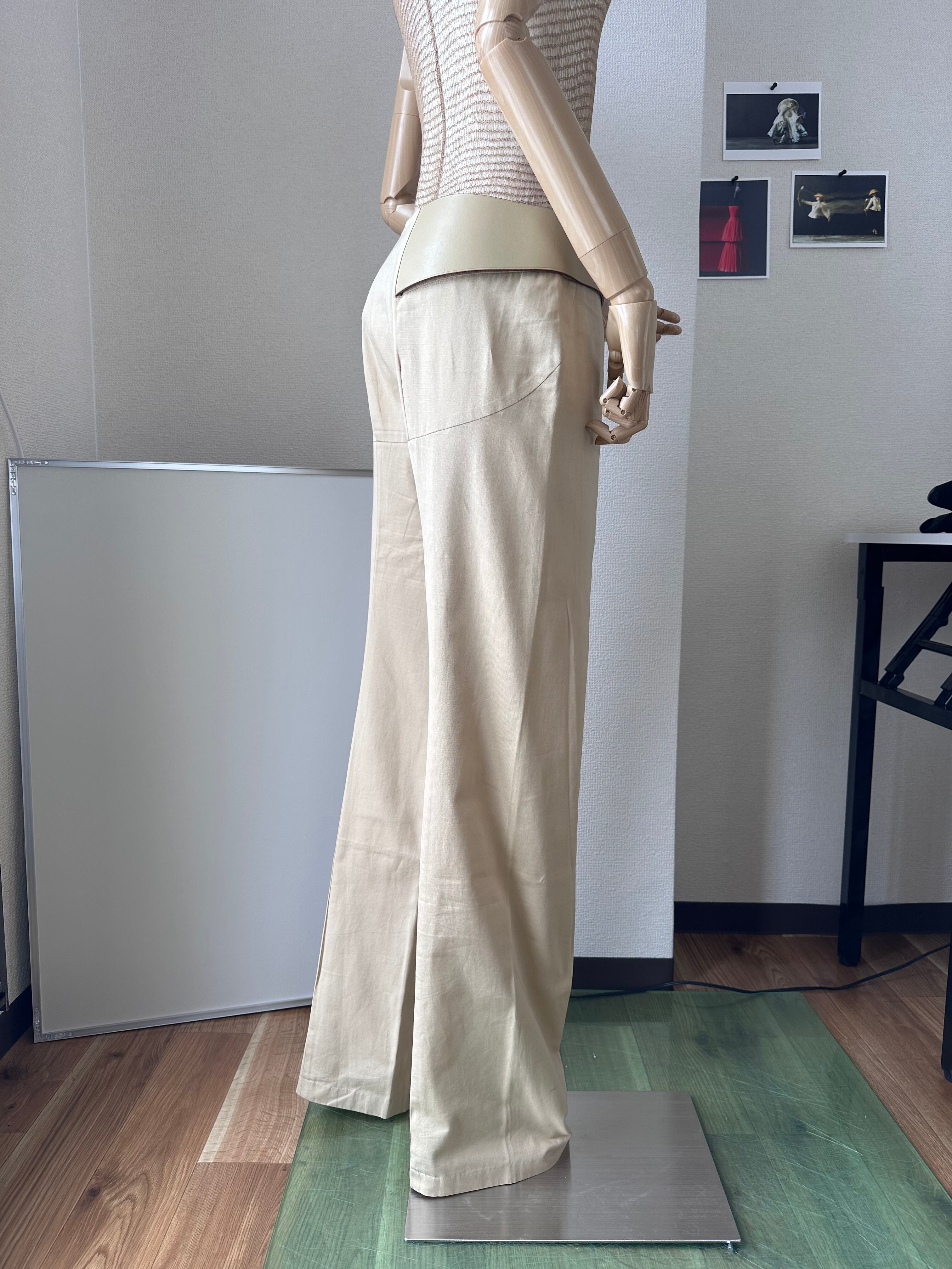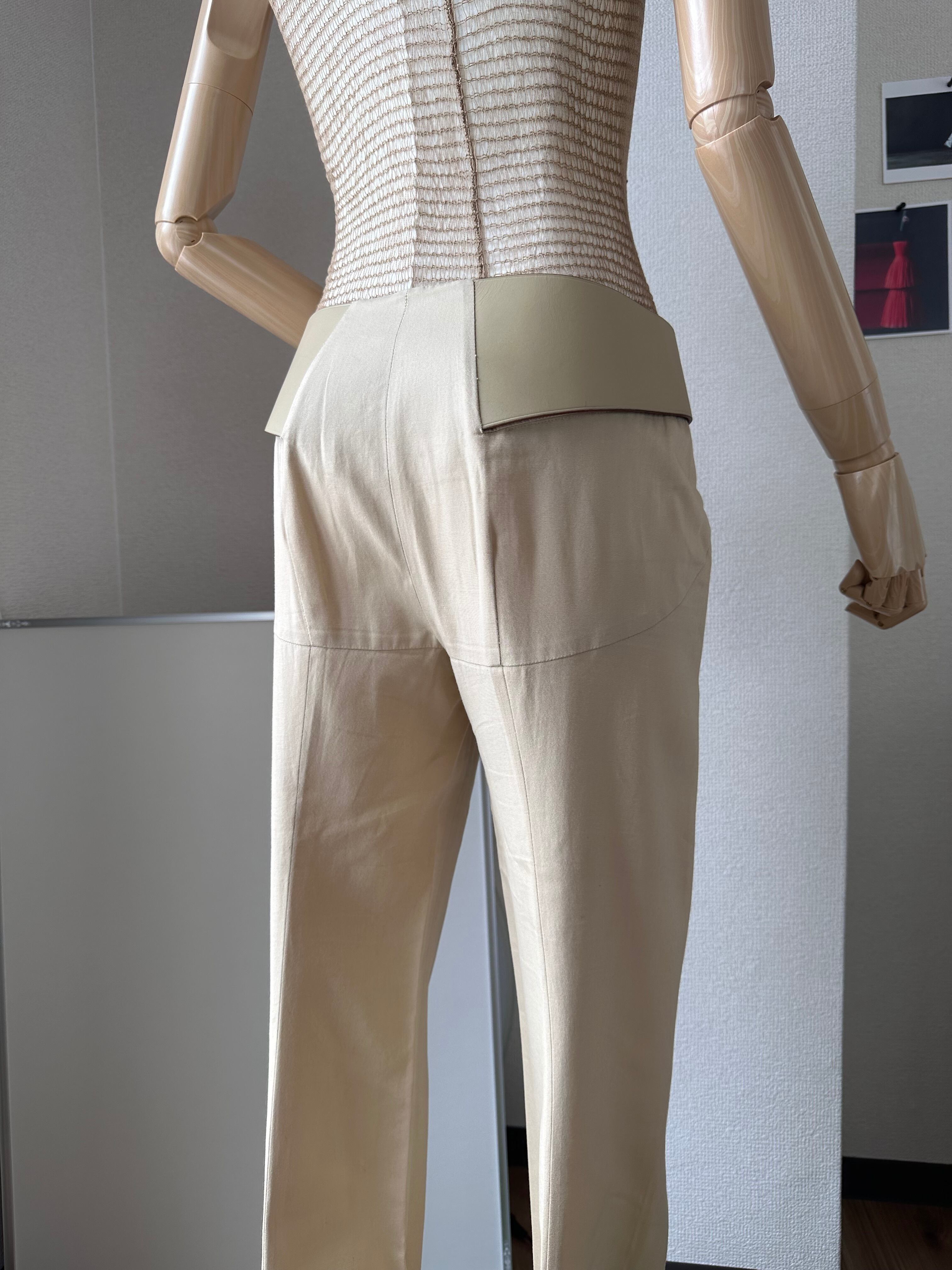 で、そのバッグウエストダーツから太巾のレザーベルトが生えてきた。