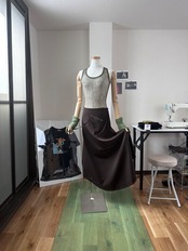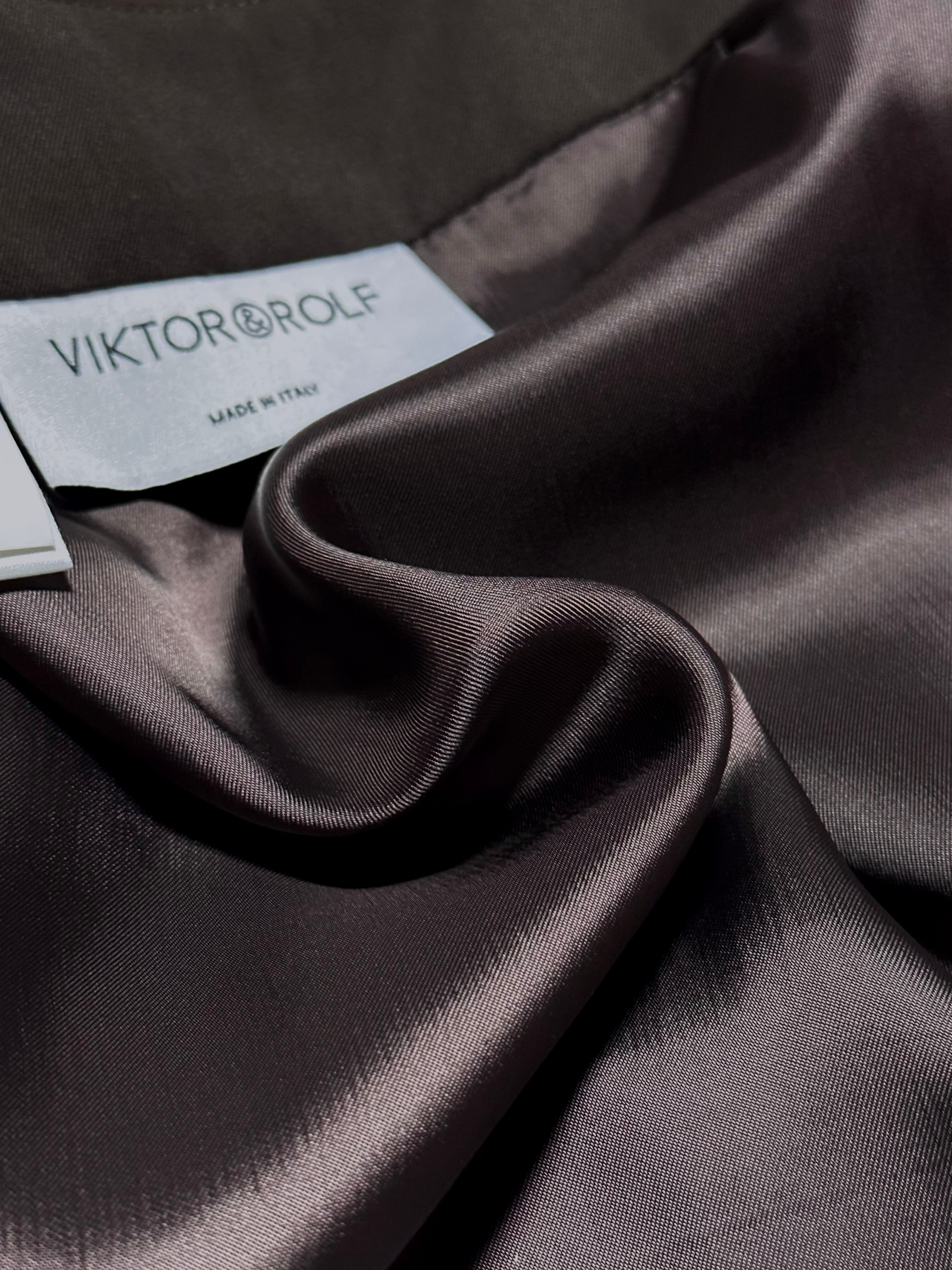 また、前後イレギュラーなヘムライン故に裏地が覗くシーンもありましょう、そんな一瞬にさえ張り巡らされている美意識。