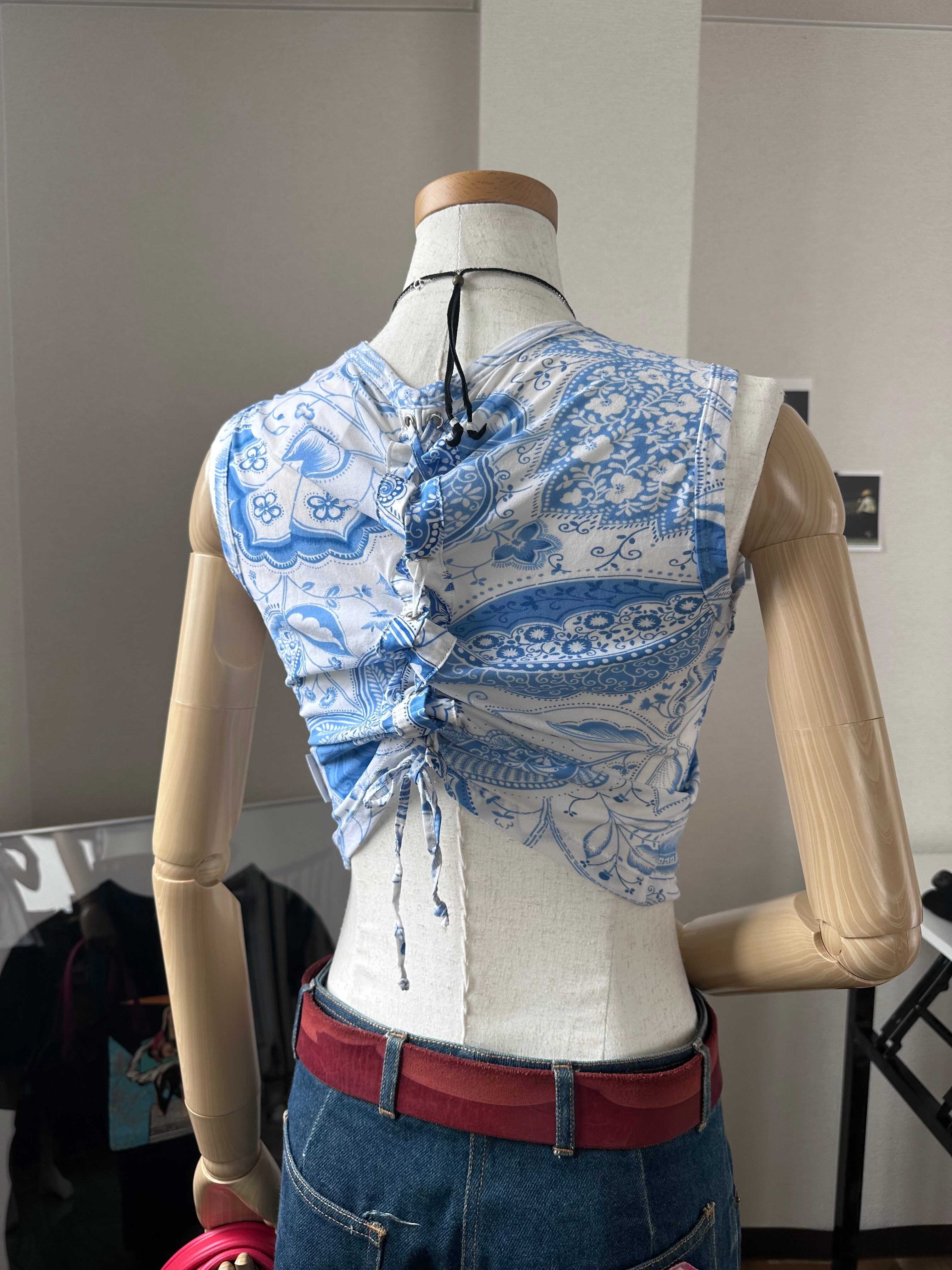 GIANFRANCO FERRE Lace_Up_Back Design “Chinoiseri” Print Top