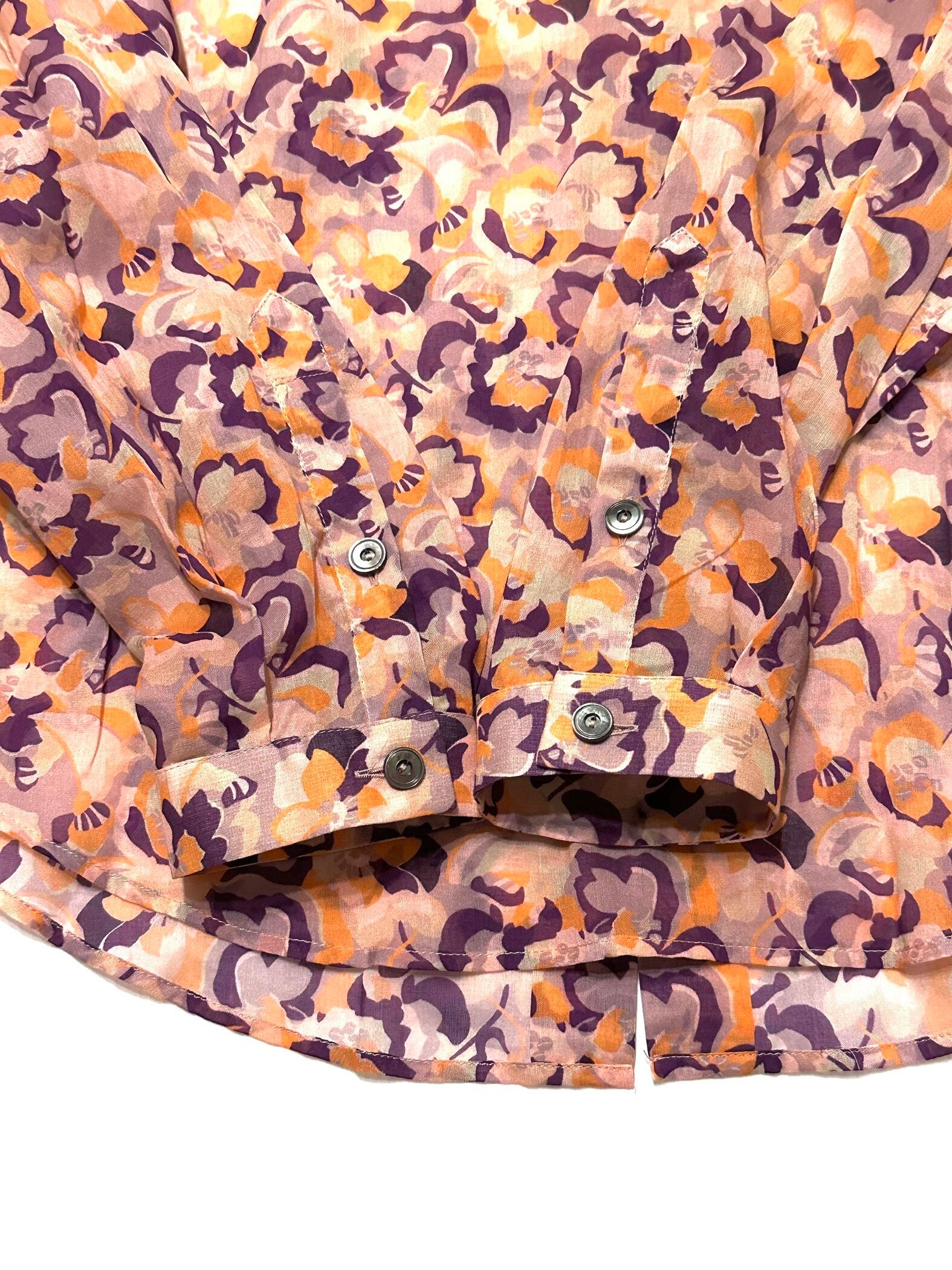 オレンジとパープルの混ざる抽象的な花柄。
