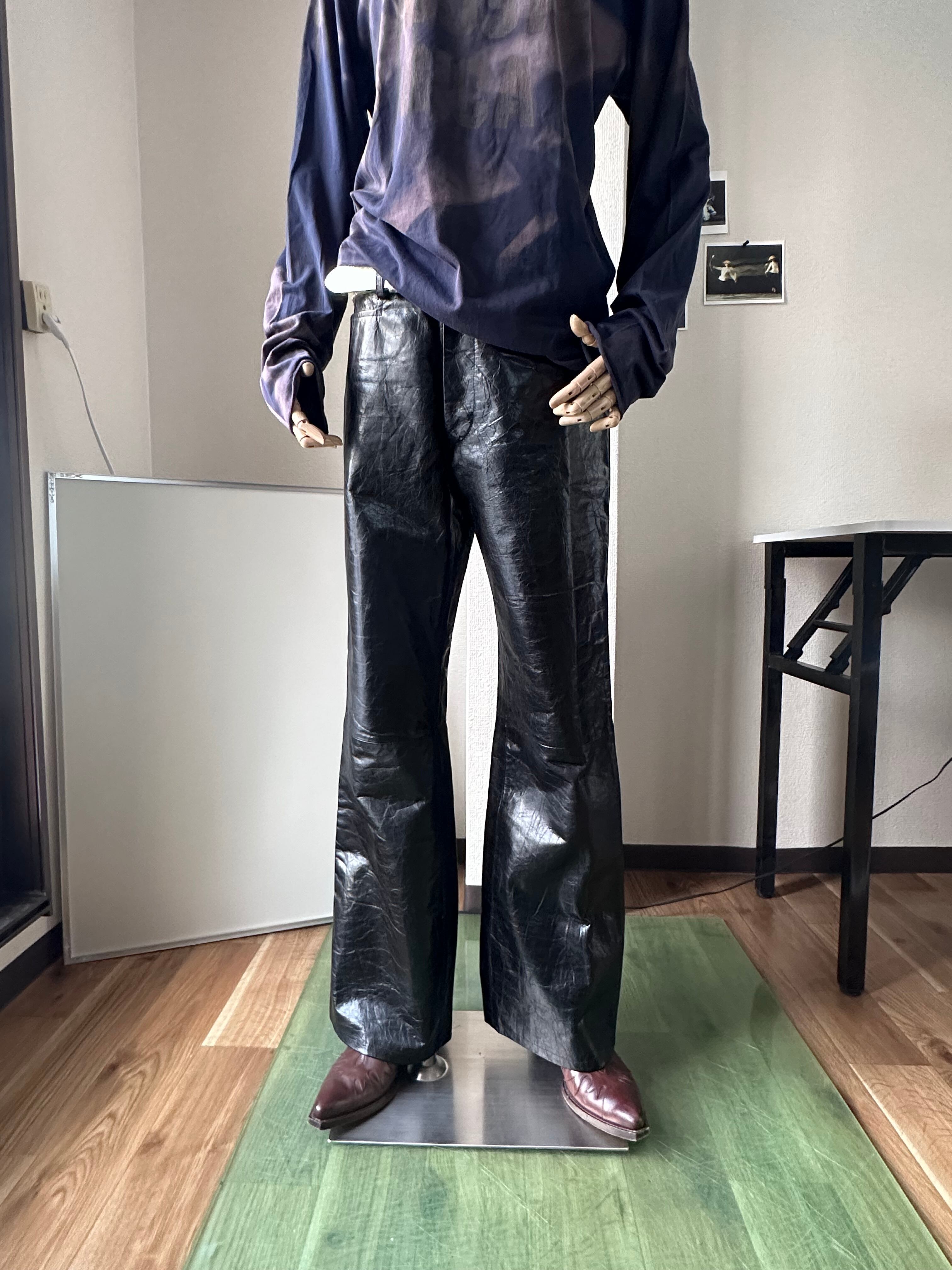 デラっと光沢のあるシープレザーで仕立てられたブーツカット。