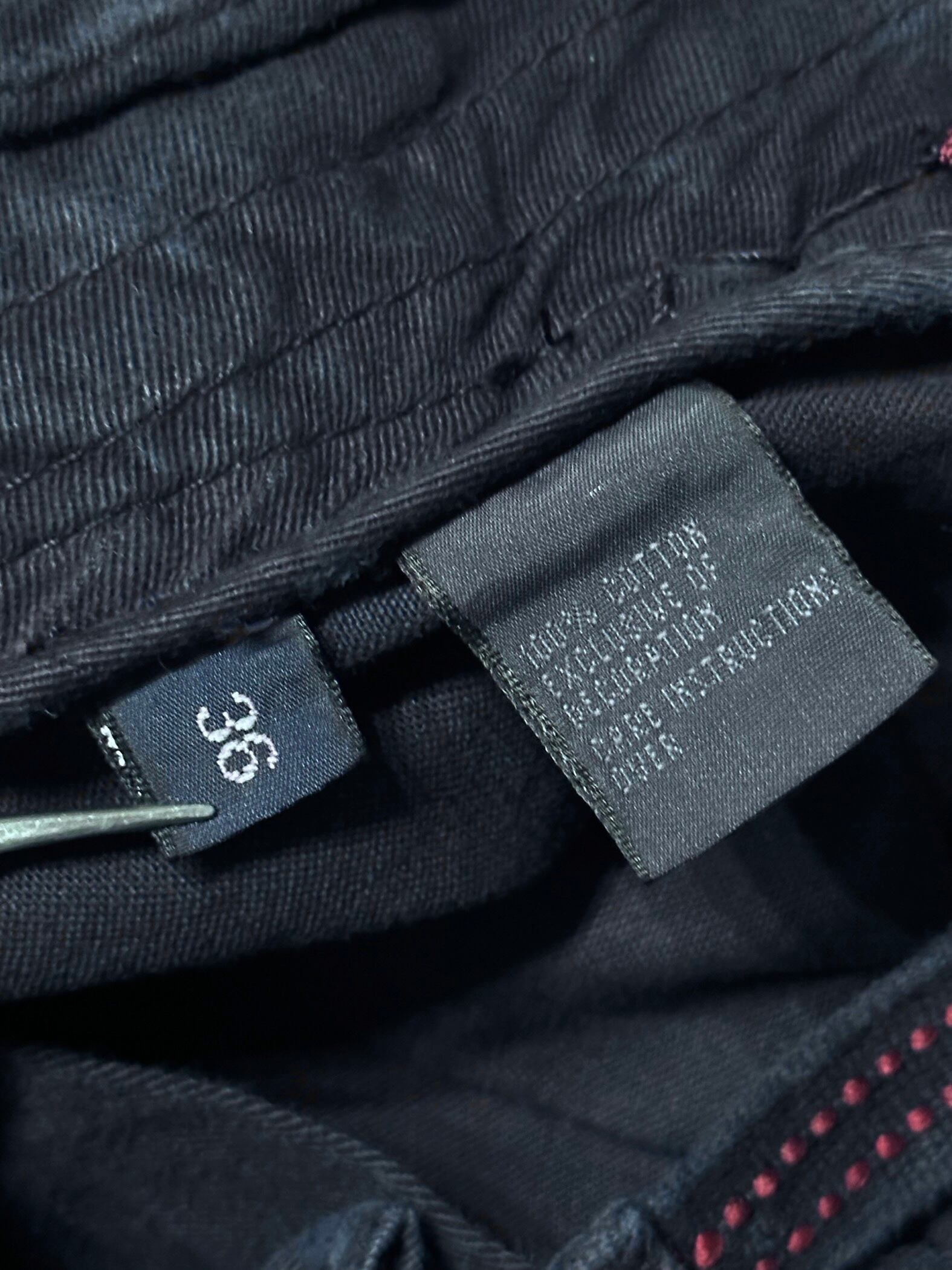 風情ゼロの冷たい海、冬の埠頭から眺めるようなコールタールの色をしたネイビーは、ゴチャゴチャと重ねられたポケット群の「影」や「縫い際」では黒っぽい色調に。