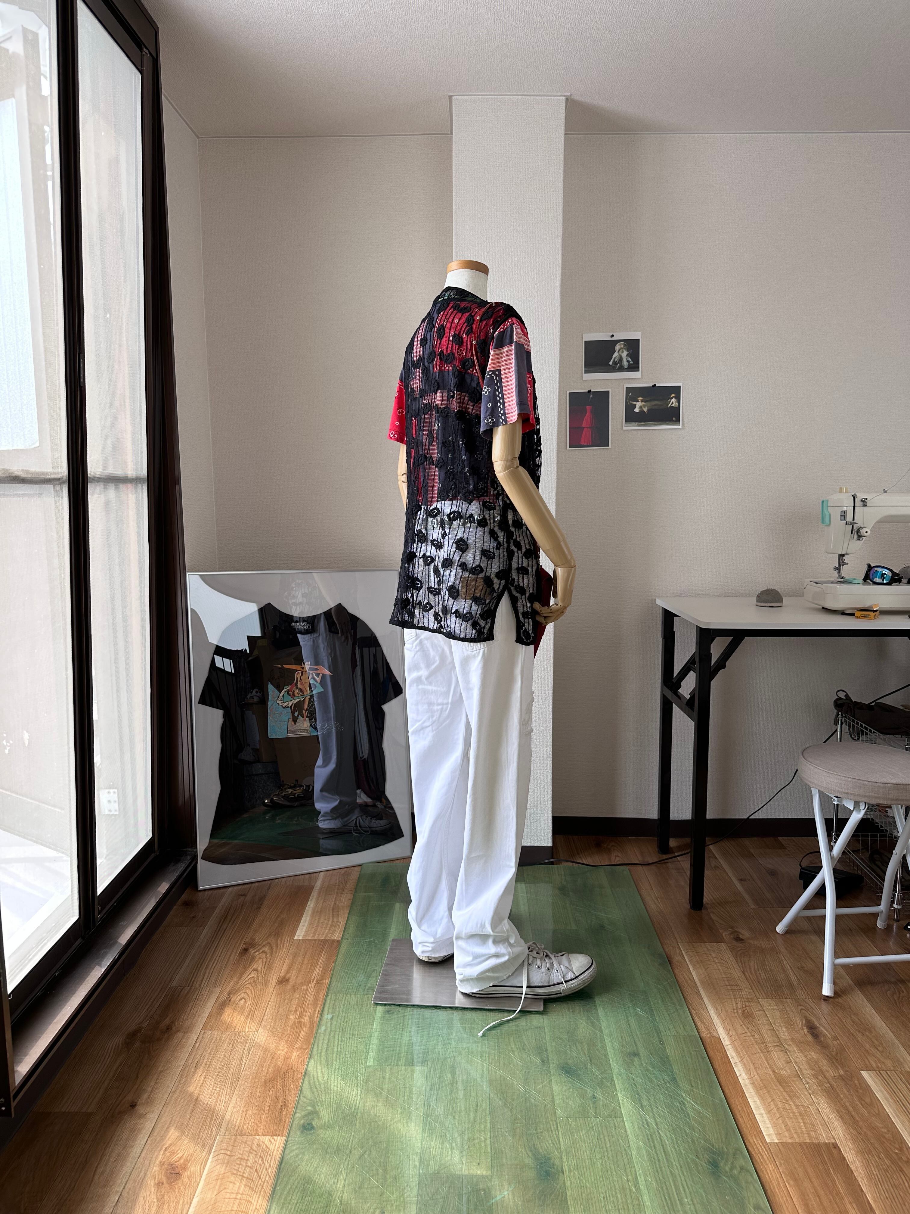 本来単色で作られる裁断前のバンダナ原反、その「本来」という部分で遊んだデザイン、服好きの皆様の心に刺さりますように。