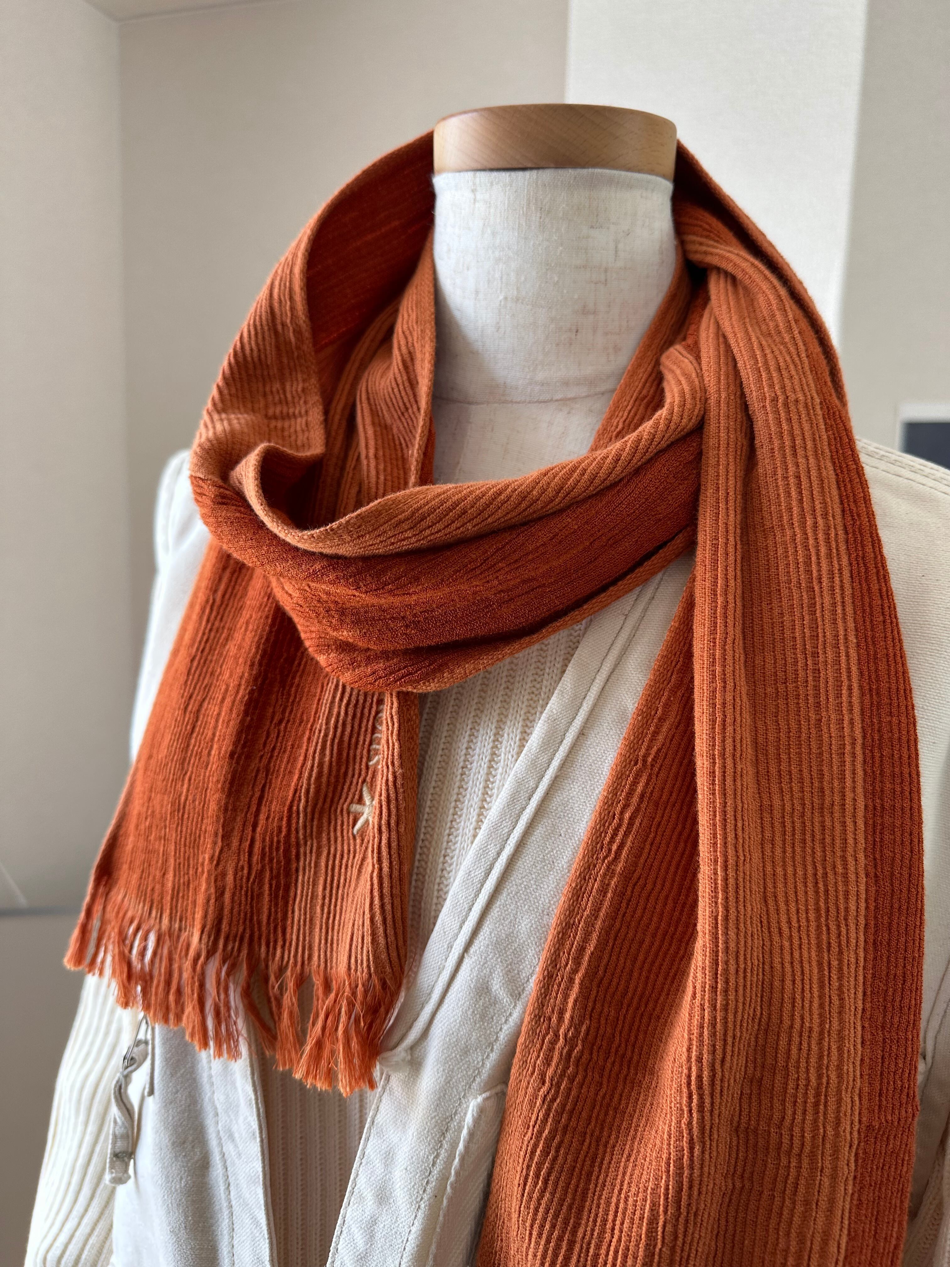 SNOW PEAK 2-Tones Orange Shrink Design Melange Knit Stole