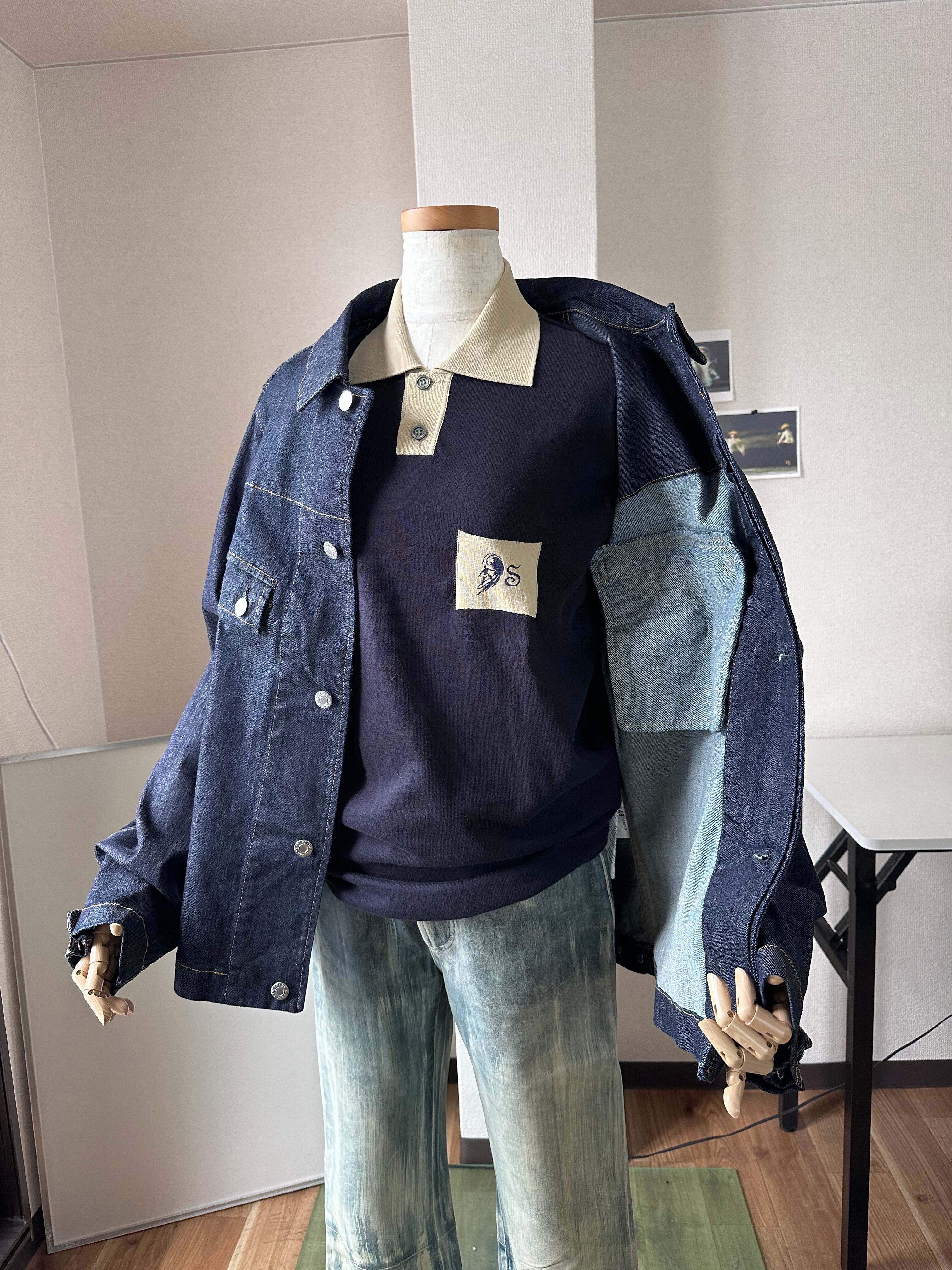 2000's JILSANDER Surfing Logo Design Knit Polo SH