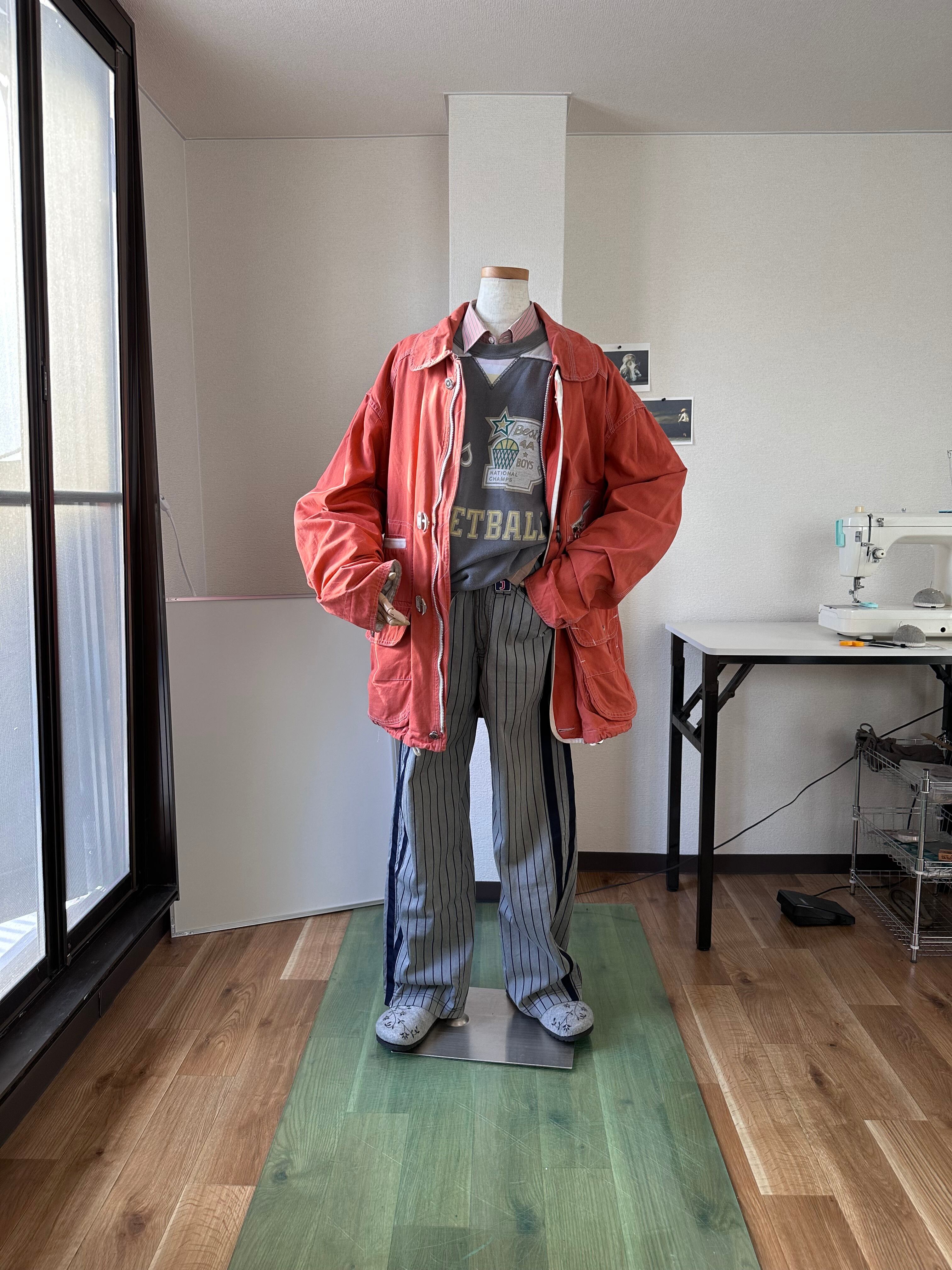 細巾のピシリとしたストライプと、わざと同色でストライプに紛れ込ませた太巾サイドラインのリズム感がニクいですね。