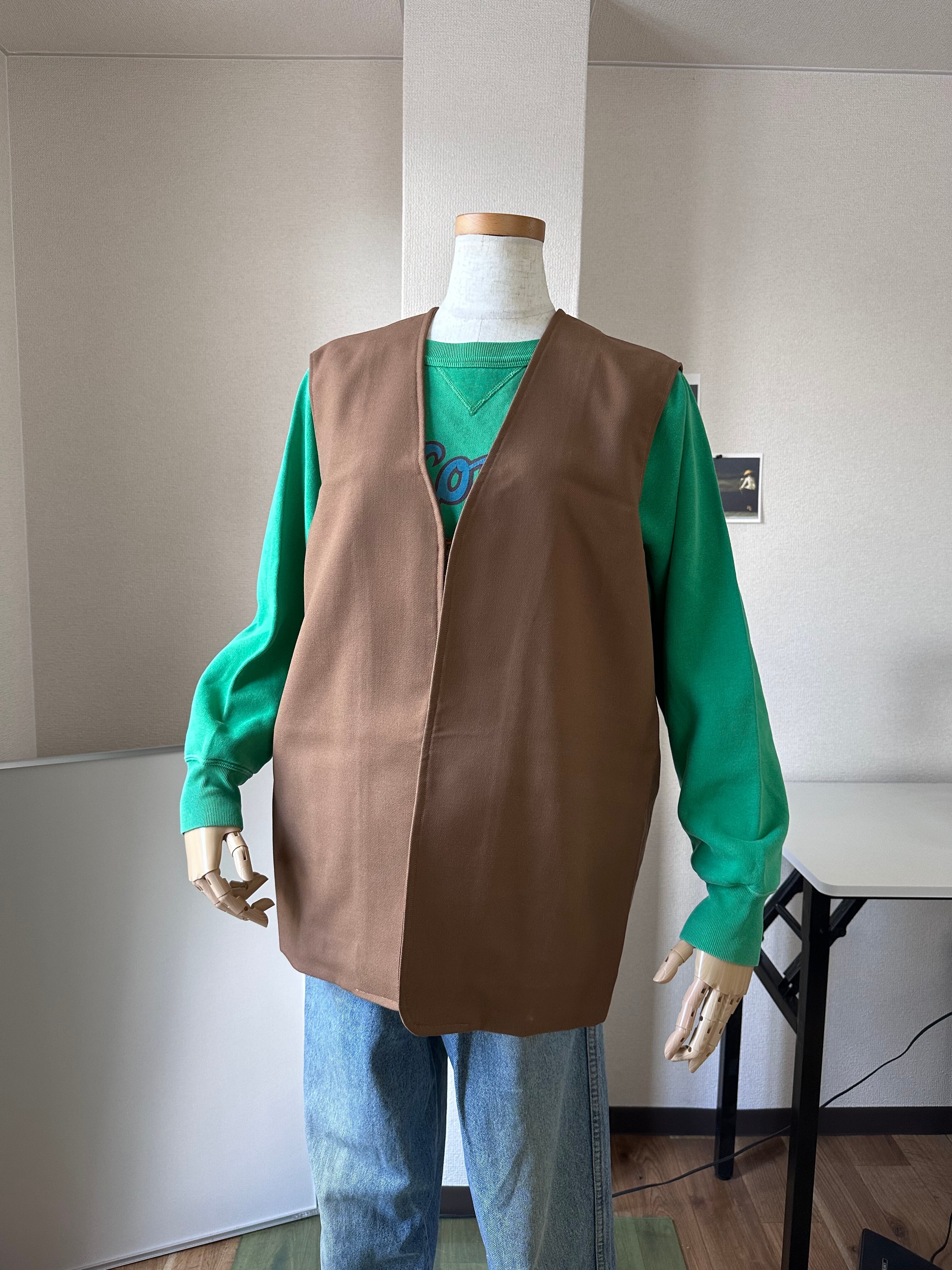 サラッとしたウール(?)サージでのノーボタン・ウエストコート。