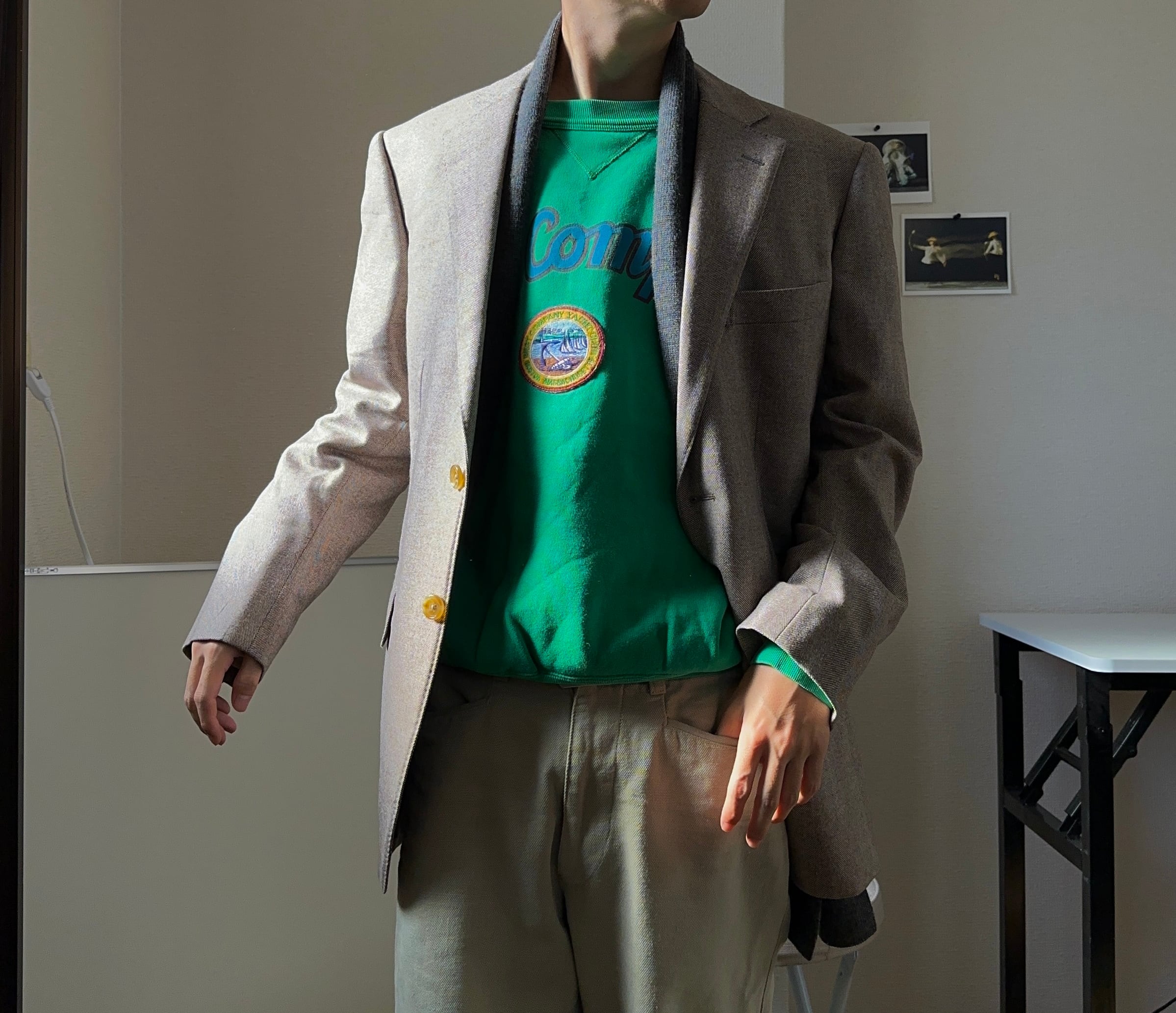 このテイストのテーラードなら一番嬉しいフィットバランスかなと思います。