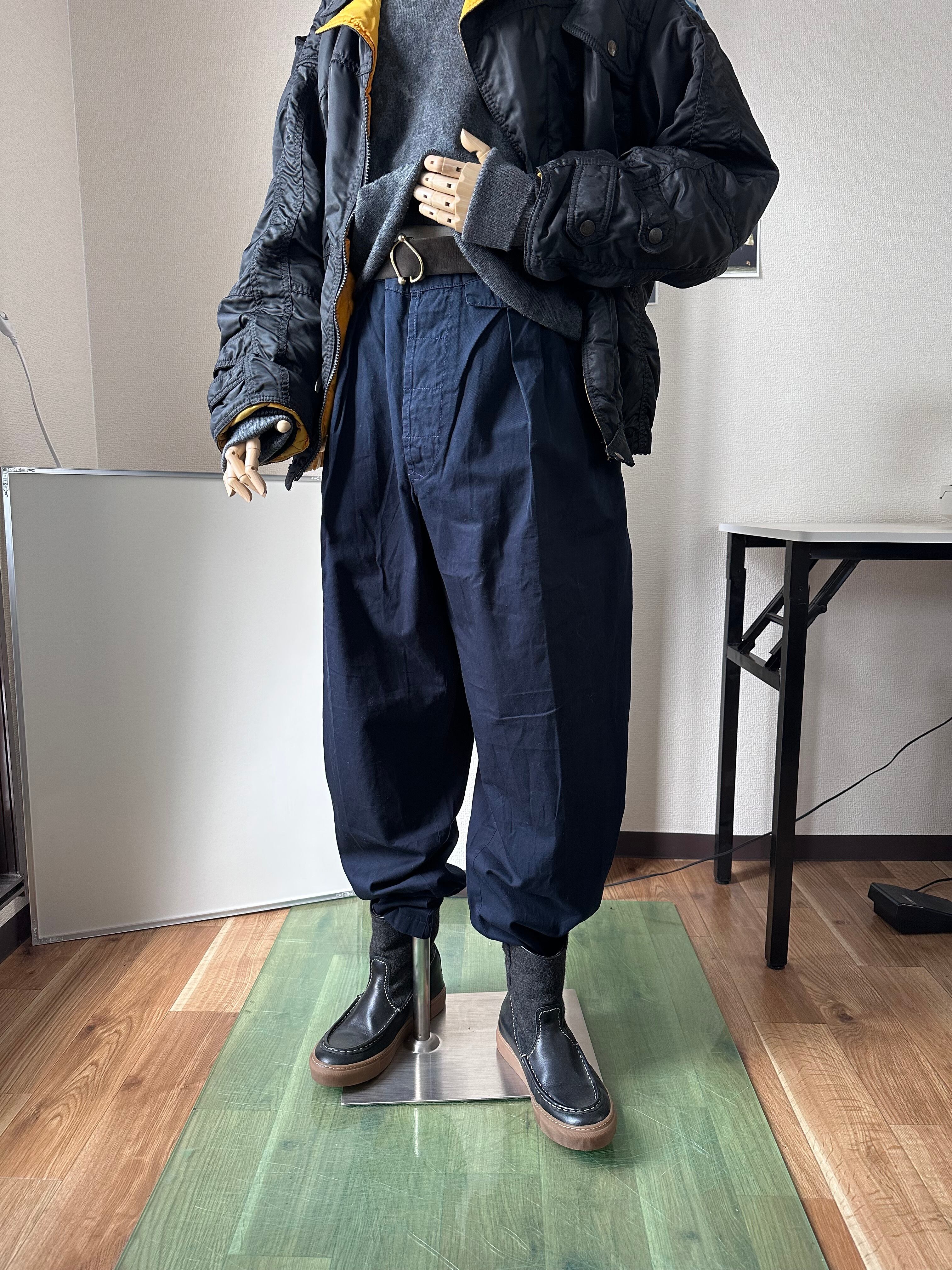 これは野放図に組まれたオーバーサイズボトムに見えて、それに負けないクオリティの機転が効いた、正真正銘の“ハイ”カジュアル。