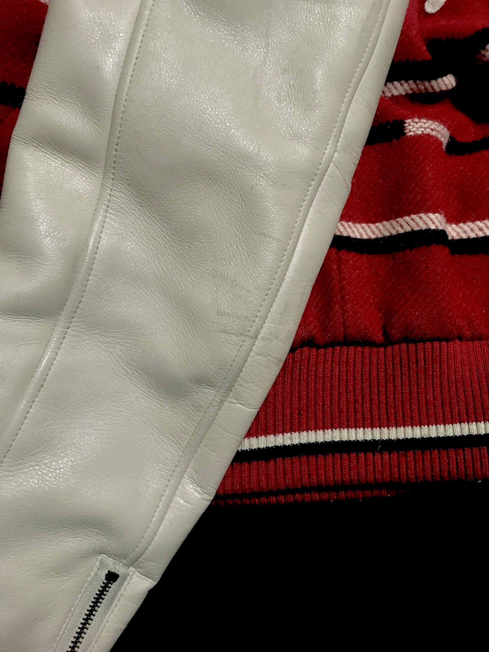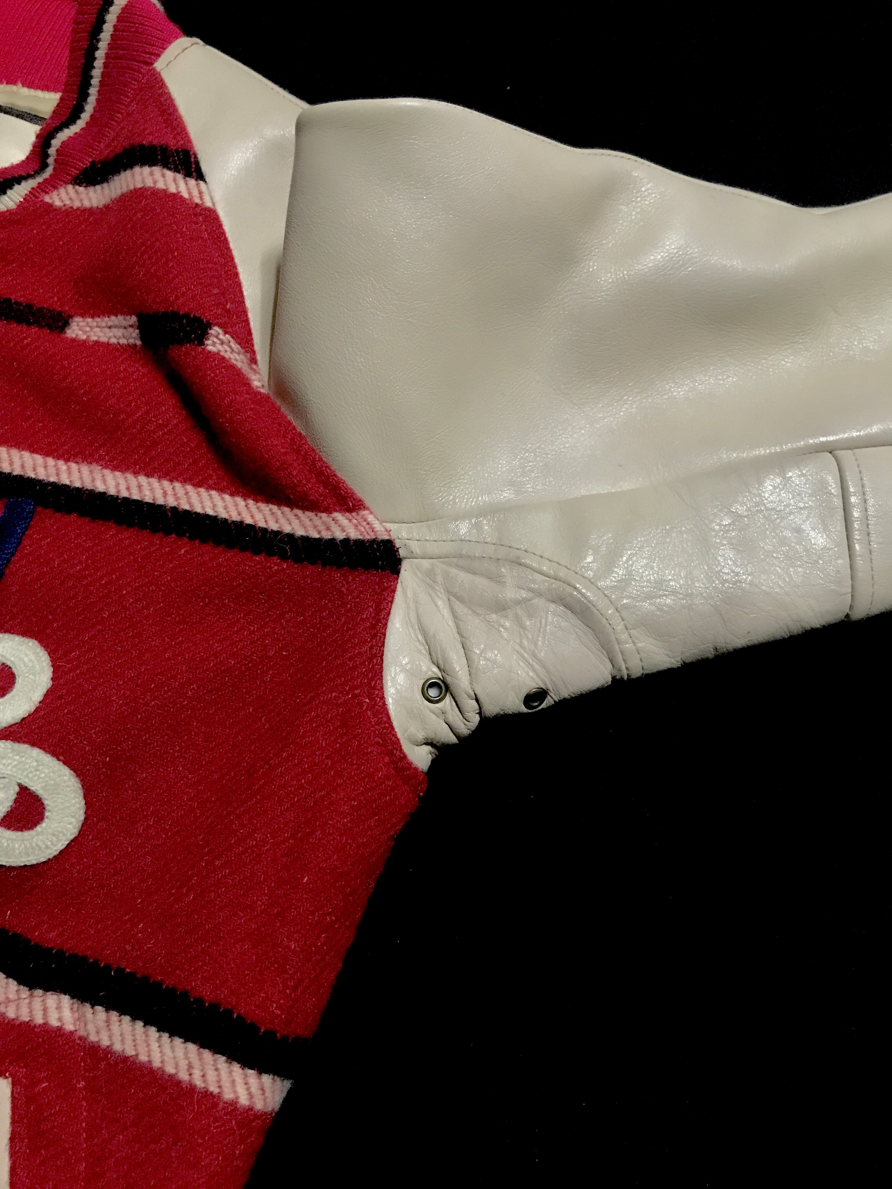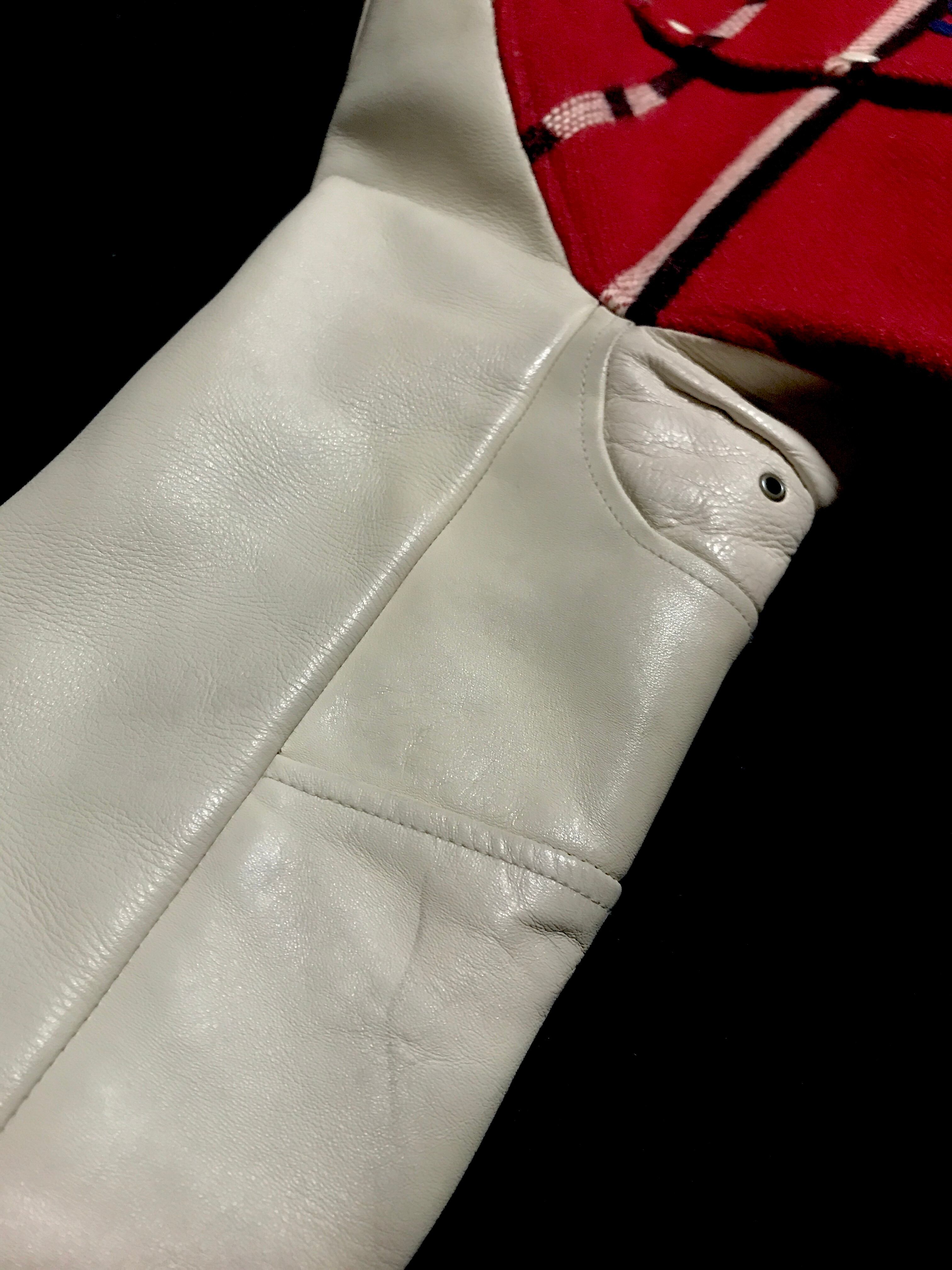 スタジャンのツラしてますが結構ライダースジャケットに寄った デザインというか、仕様です。
