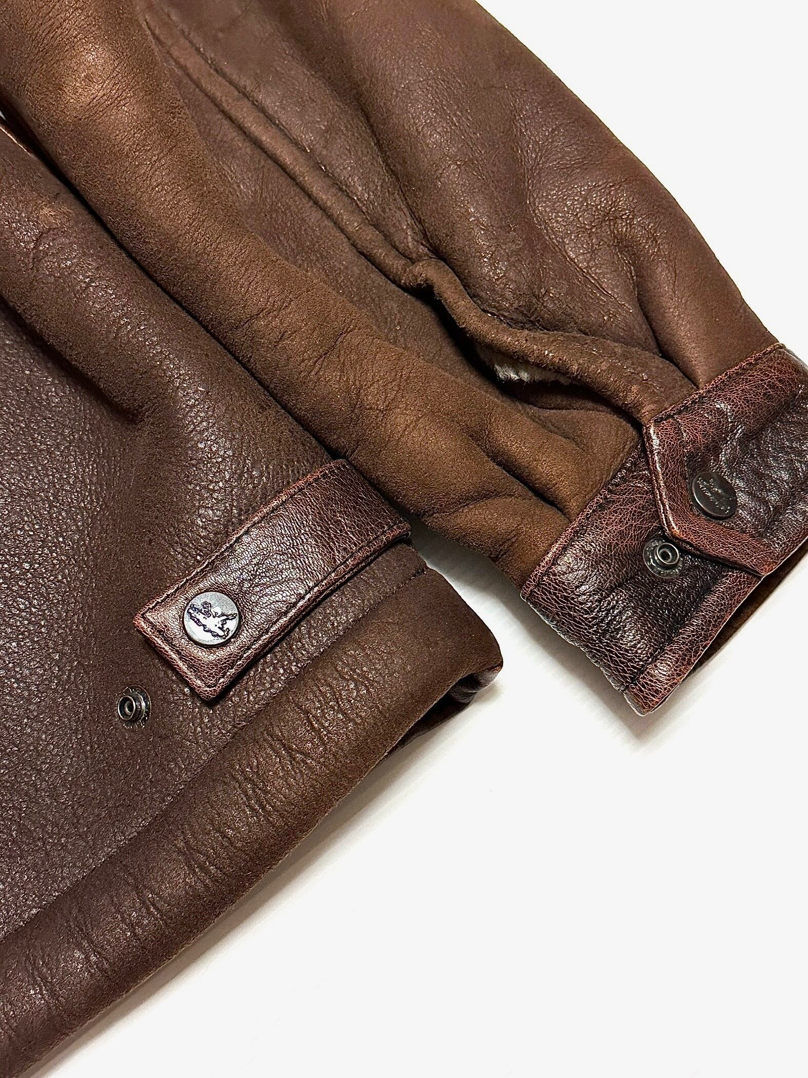 前身頃だけ、毛皮面を削って裏面にデニムをライニングとして貼り当てた仕様なんですよね。