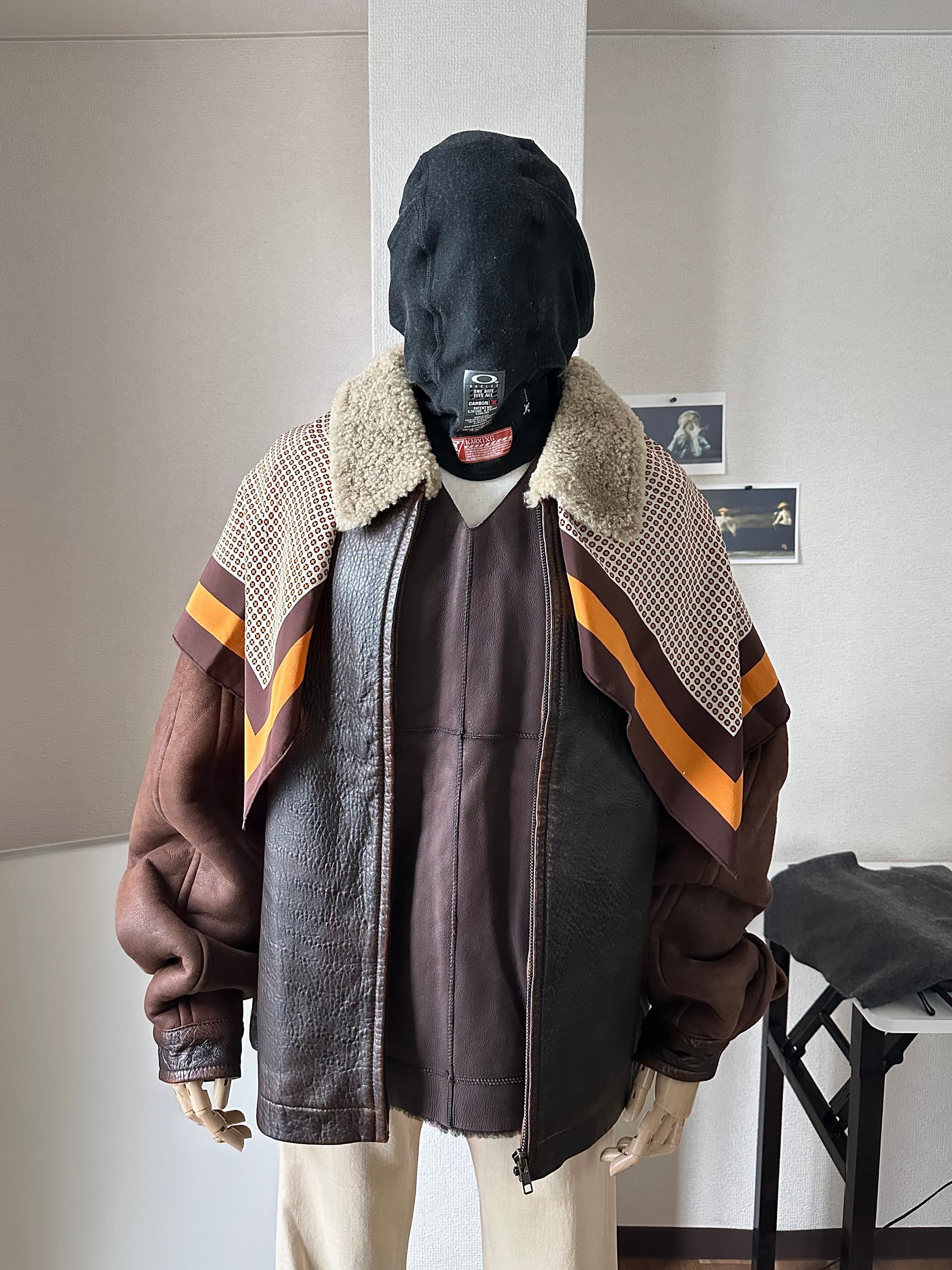 KA UOMO Various Materials Mix Mouton Leather JKT