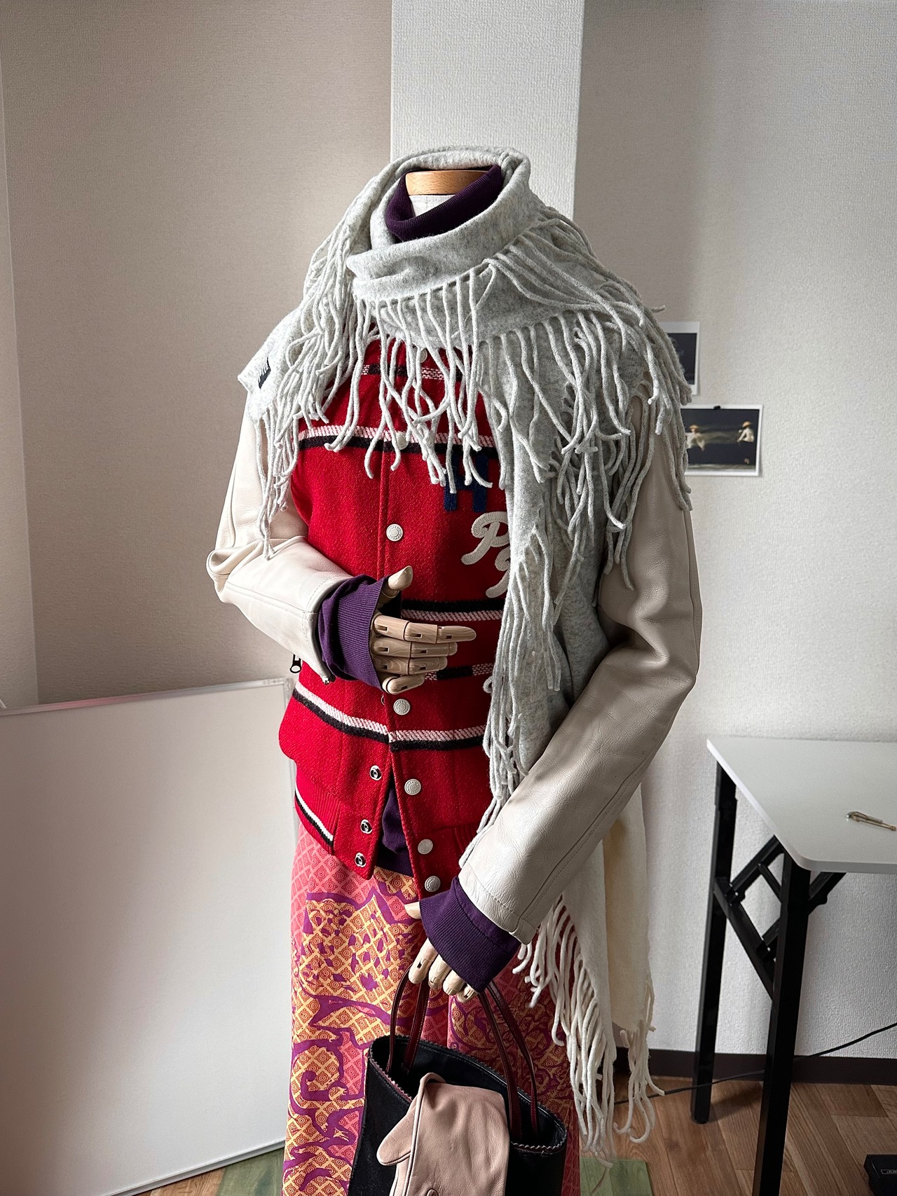 ジャストフィットなアウターと合わせる時に活躍するような薄めの生地感。