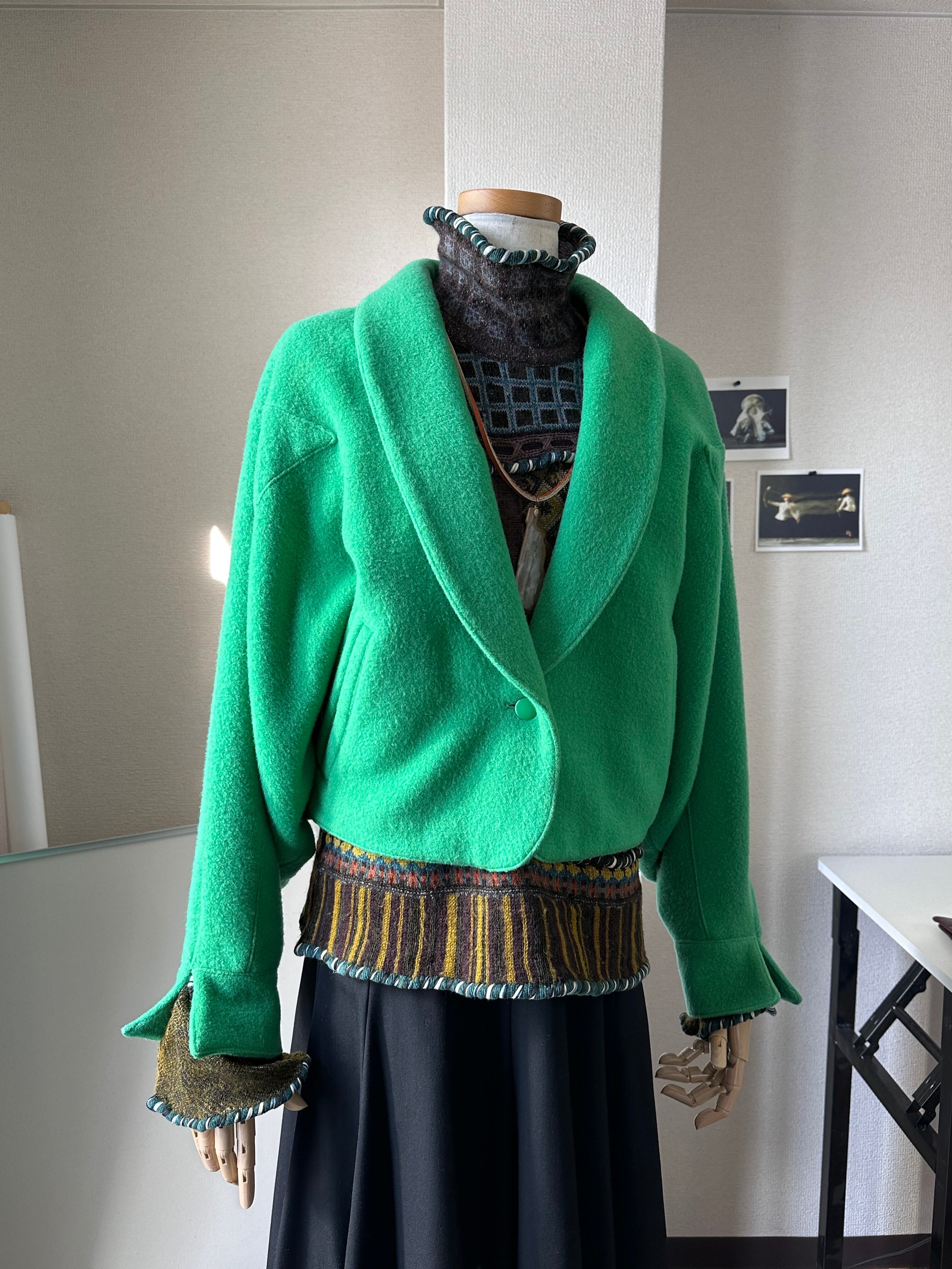 80's CLAUDE MONTANA Paris_Green_Wool Ex_Wide Body JKT