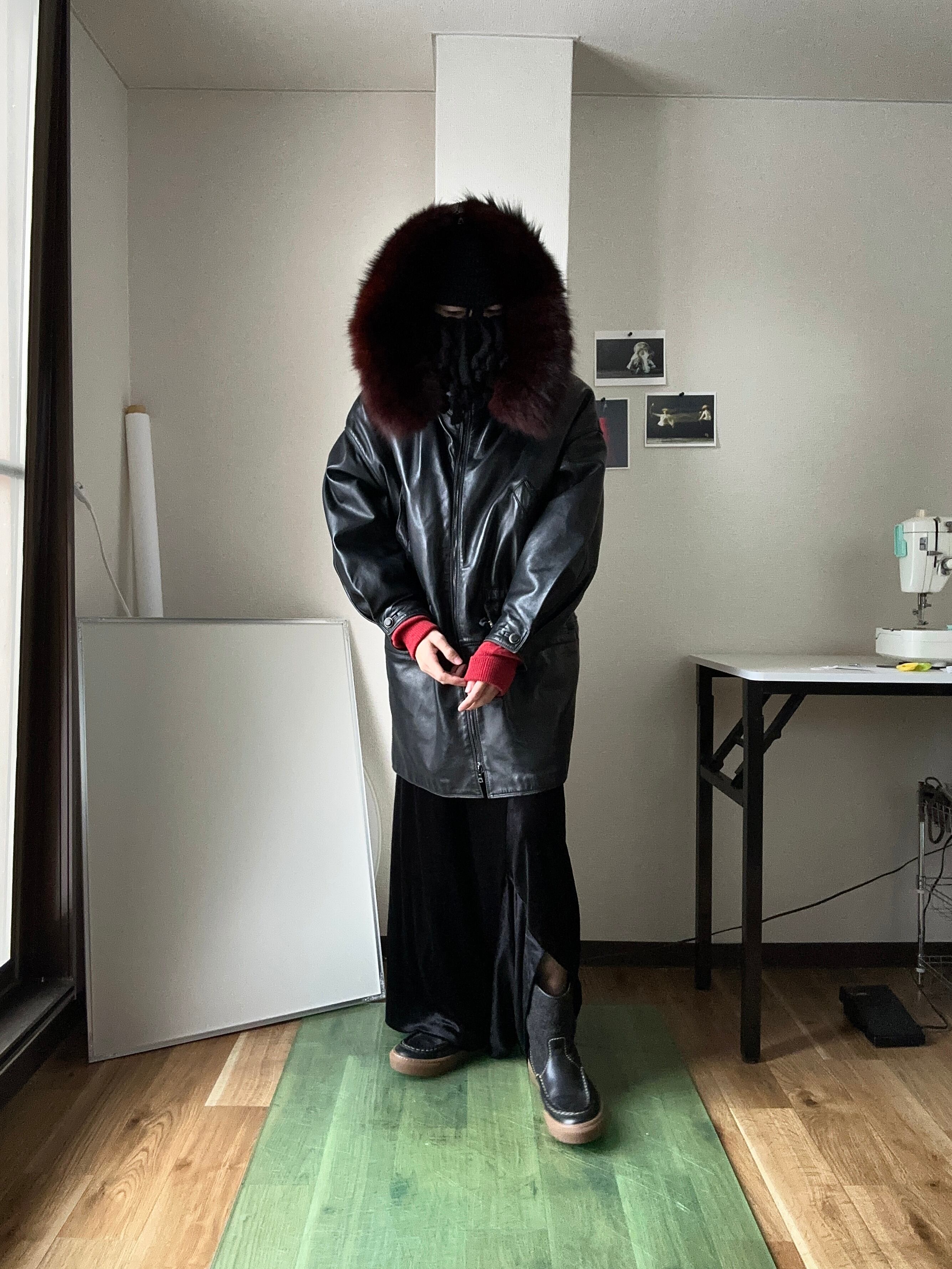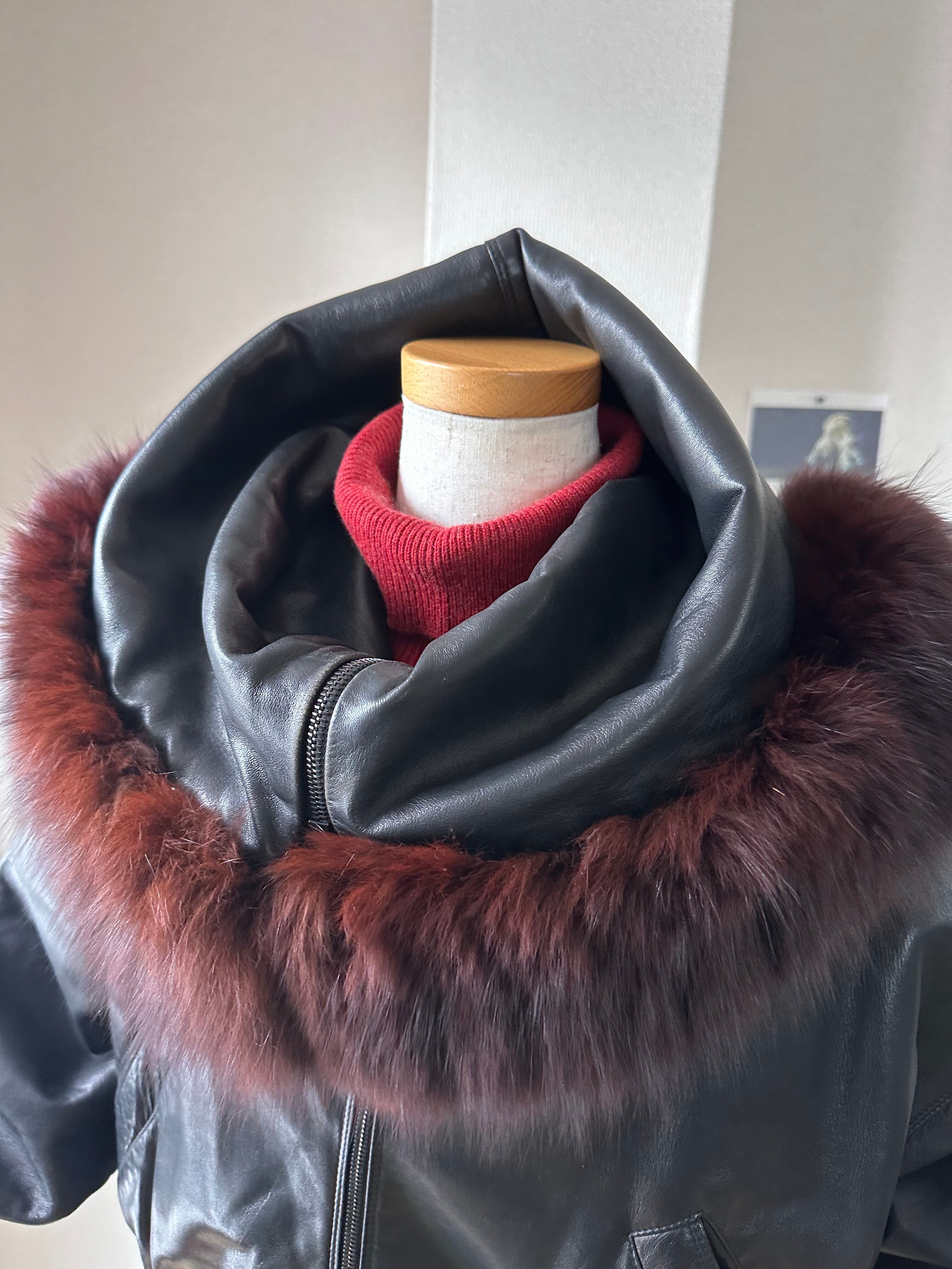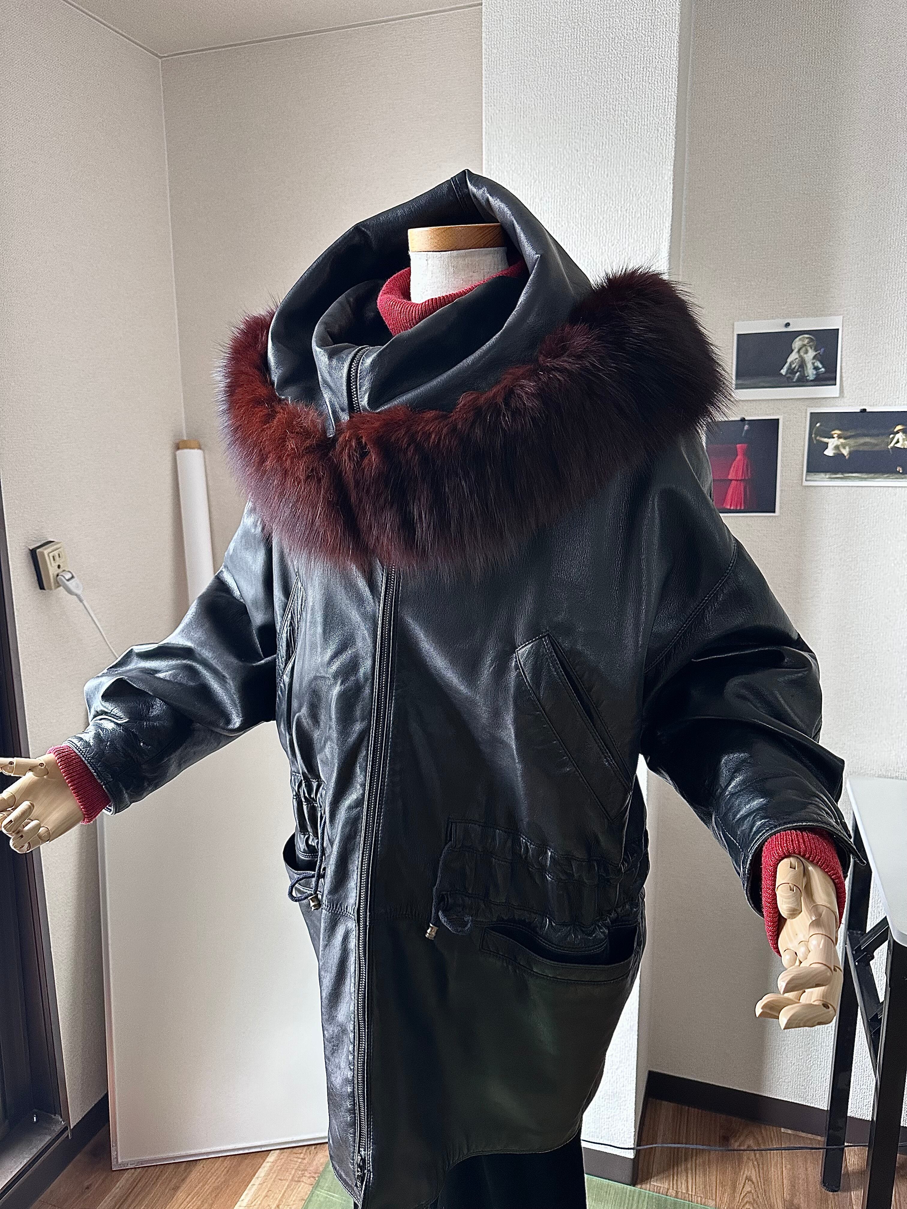 c80's RUFFO Separate_Hood Design Ex_Soft Lamb Leather Cutting_Edge Coat
