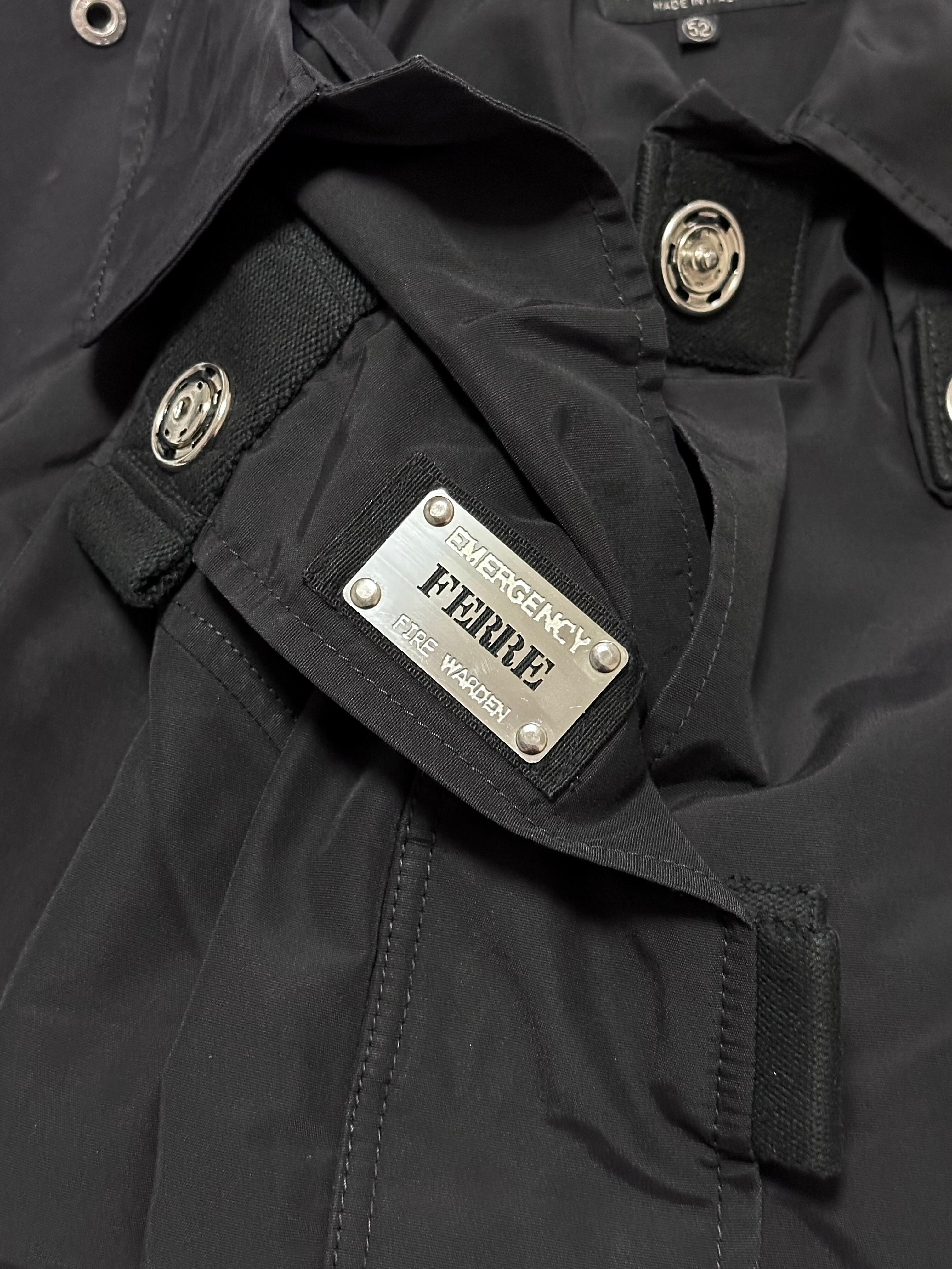 c90's GIANFRANCO FERRE Oversized_Buttons Design Black Fire_Warden Coat