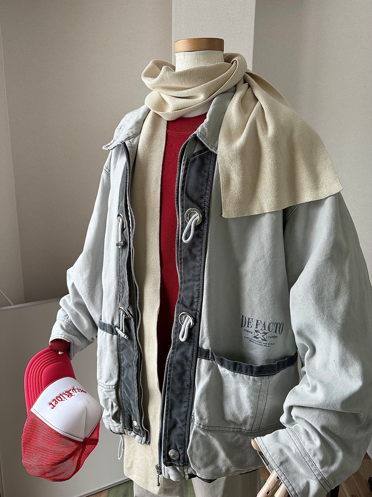 あのボリューミーなジャンパーをトコトン平らに、ギュギュッと圧縮して動き易くしたような感覚です。
