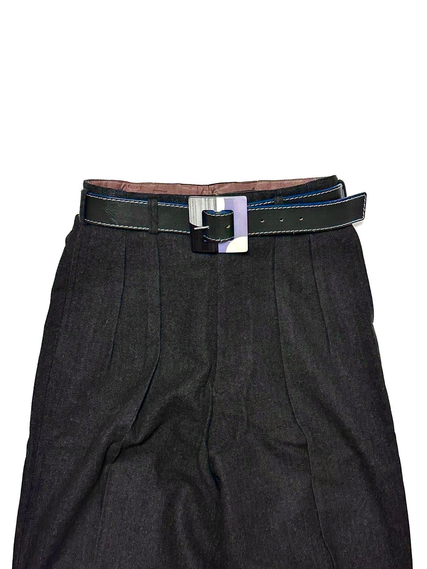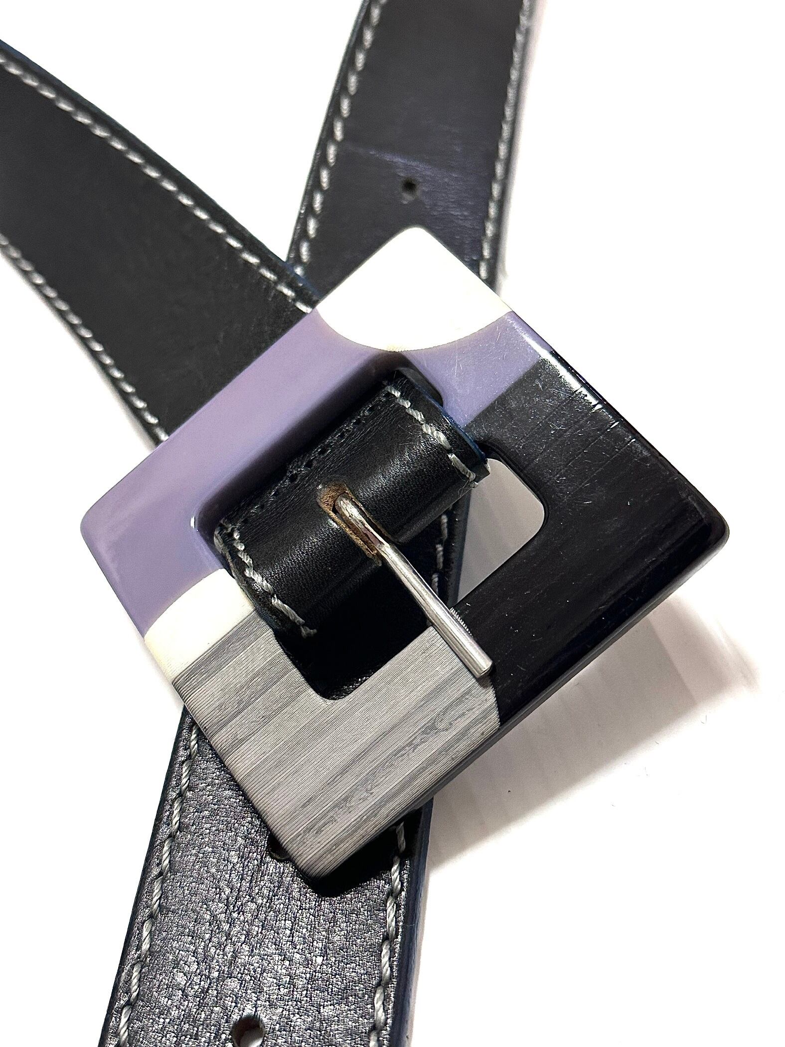 c90's ITALY VINTAGE Square Buckle Bold Leather Belt