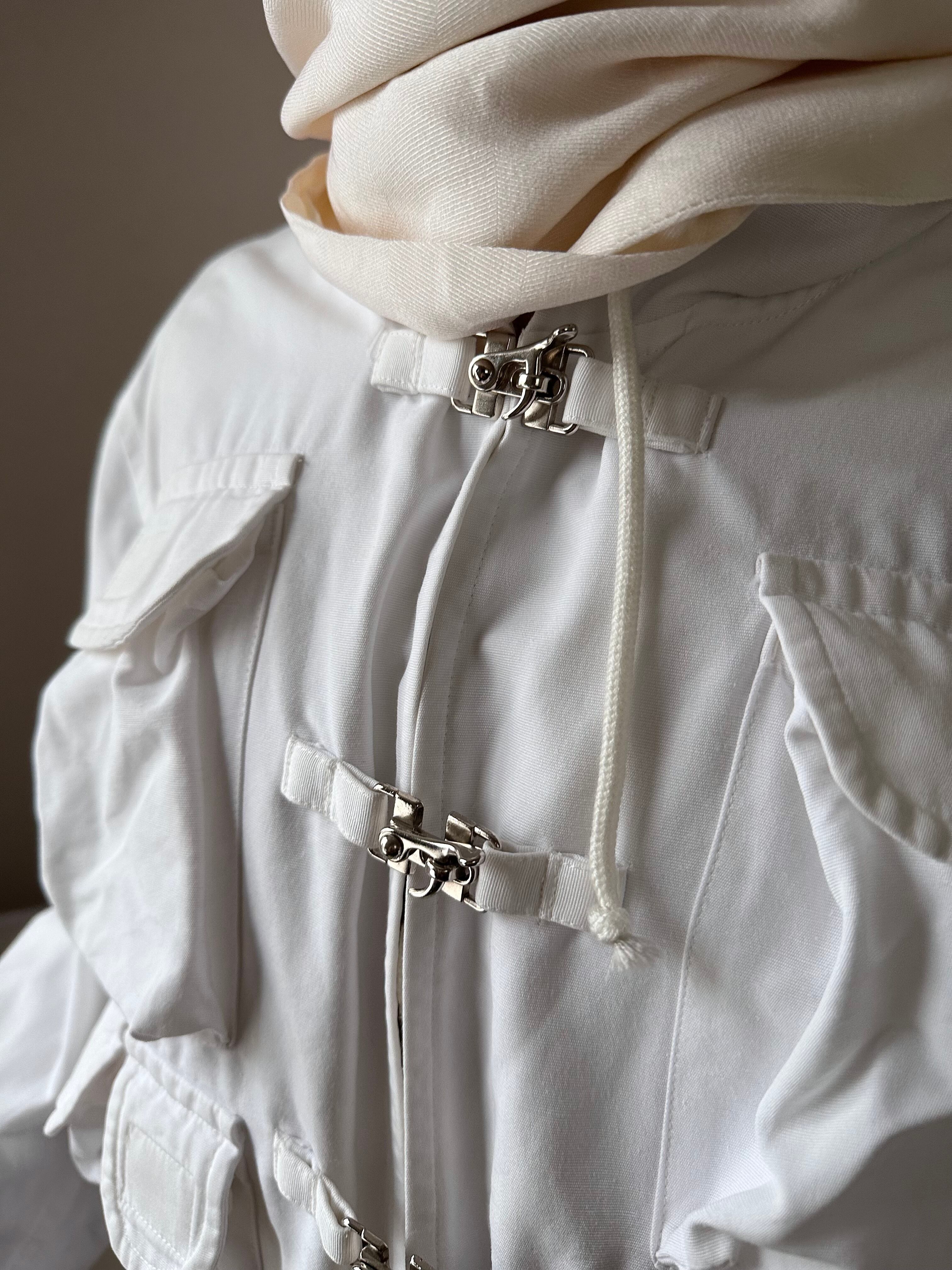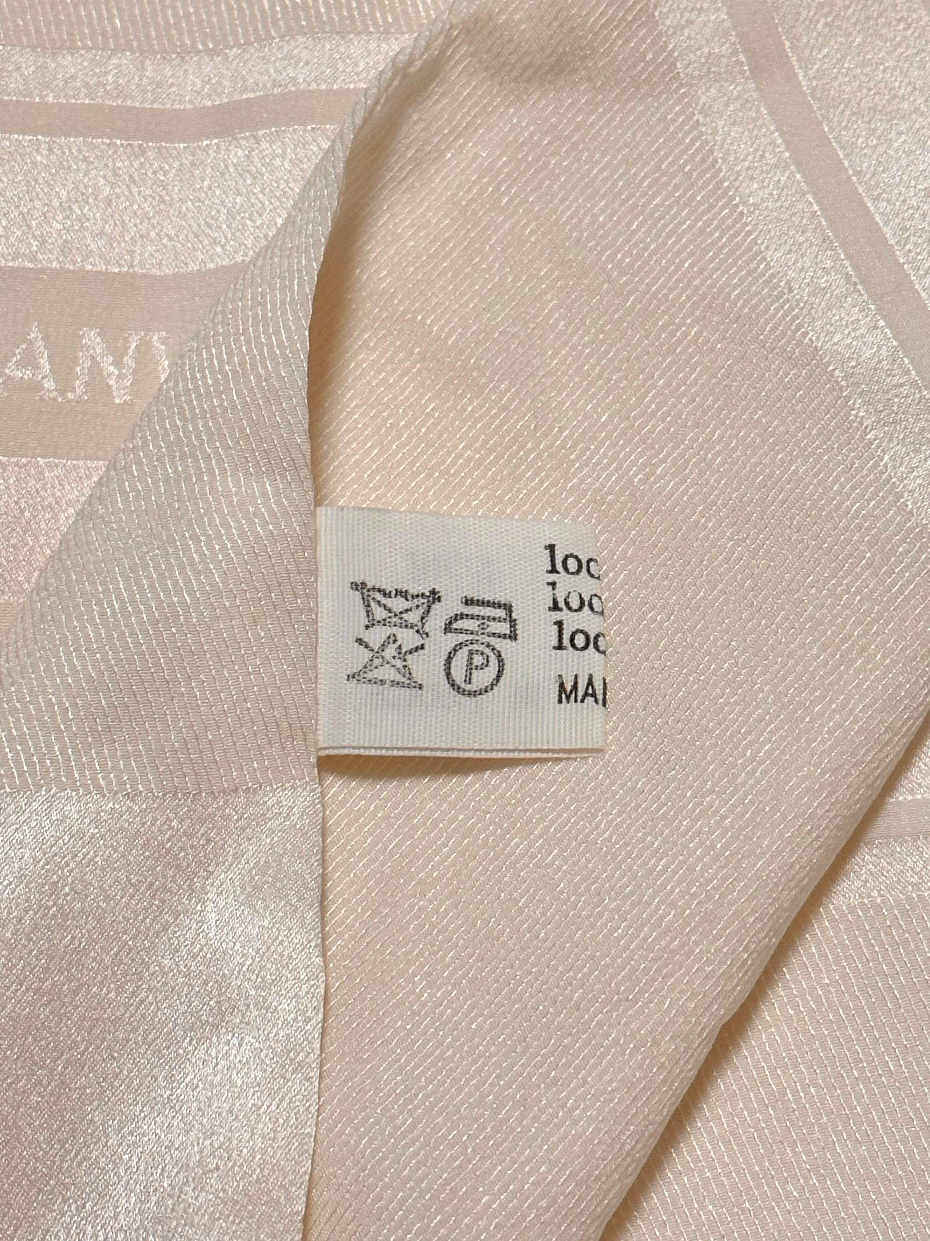 c70-80's LANVIN (EU) White_Beige Silk Reliefed Logo Design Stole