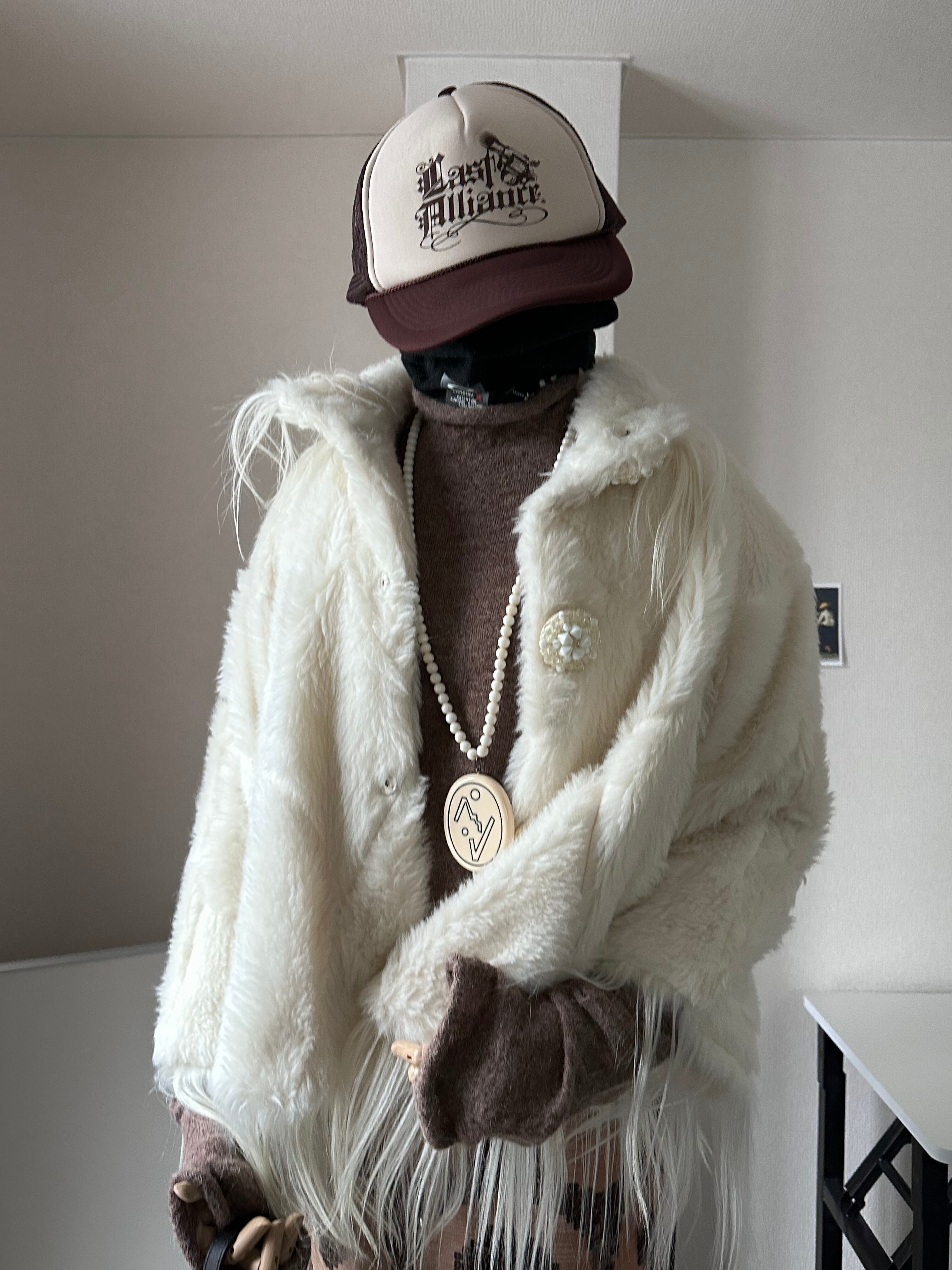 ZUCCA '05F/W White Alpacas Ex_Long Hairy Pile Short_Body JKT