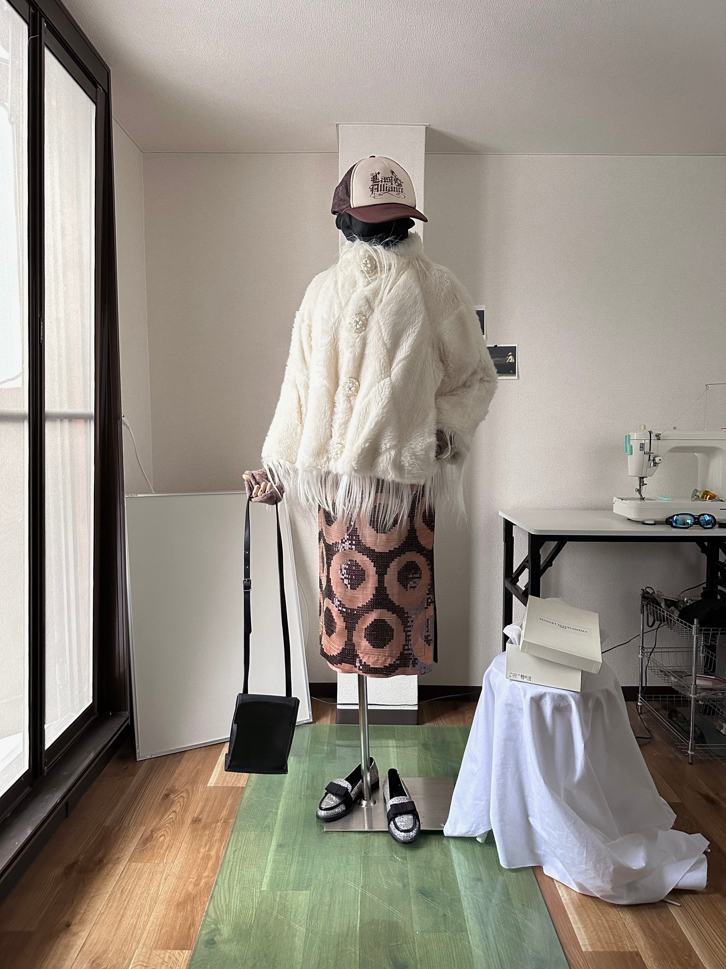 60-80年代のミンクやセーブルを無理して引っ張り出して装いに捩じ込むのもまたストリートファッションですが、そのフローチャートすらをも根っこからデザインした素晴らしいファージャケット。
