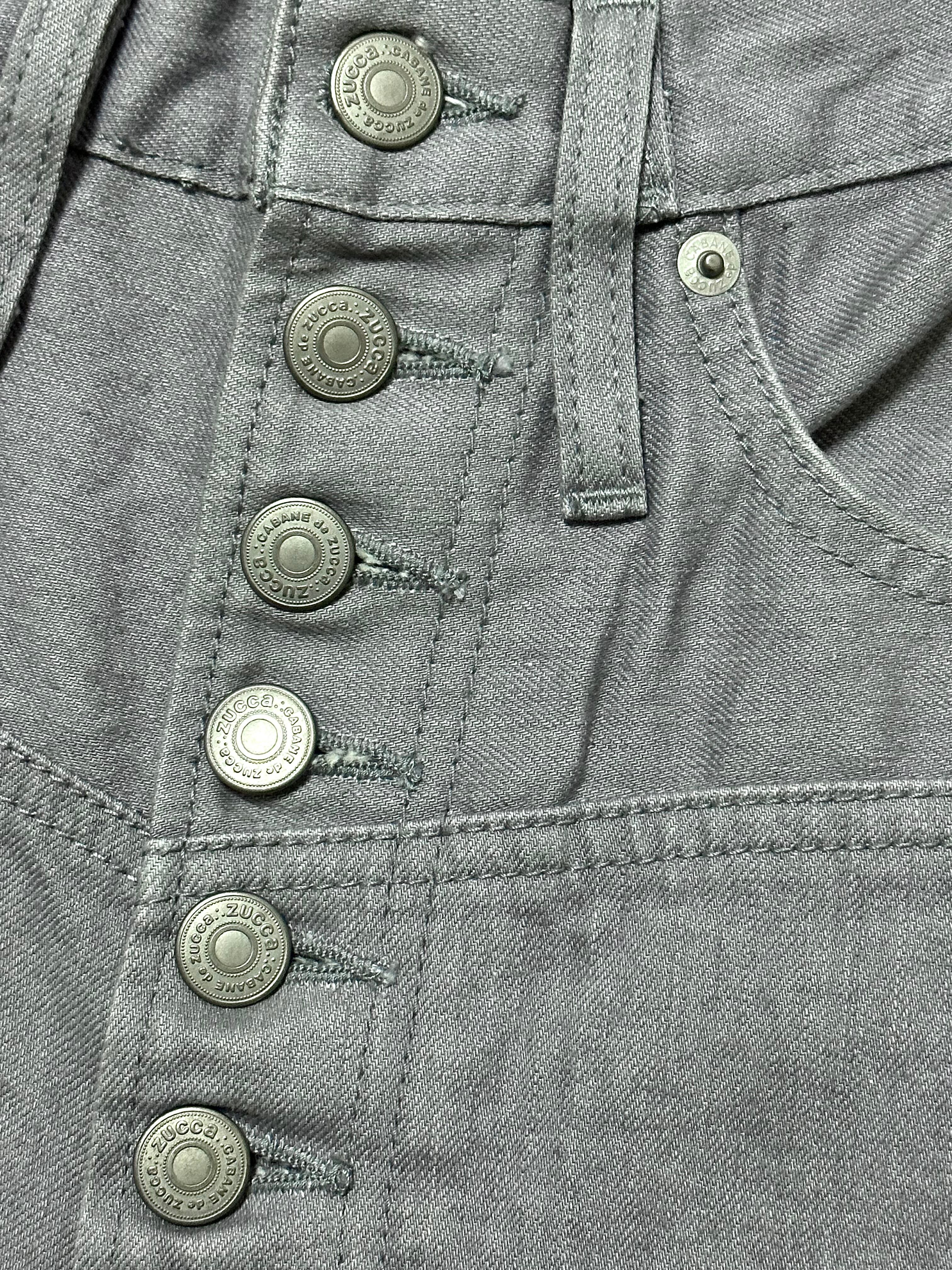 CABANE DE ZUCCA Diagonal_Curved Buttons Design Irregular Cut Jeans